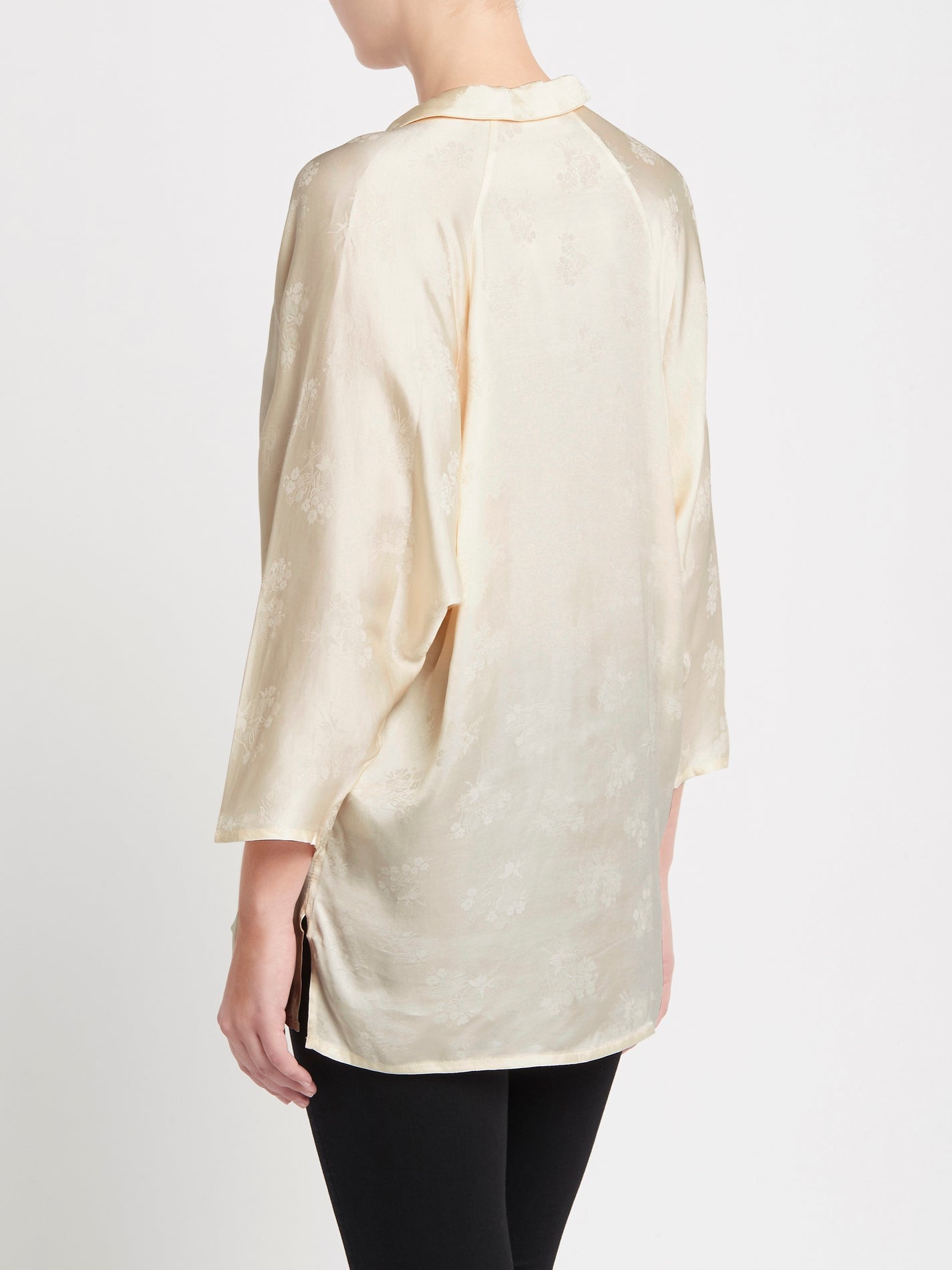The Gitaka short-cut silky shirt in mother of pearl adds a fashionable edge to any look. Made of 100% Viscose, this light and silky shirt with its light colorway and refined print creates a timeless wardrobe essential. Wear it tucked into some high waisted pants for the perfect cool & casual outfit.