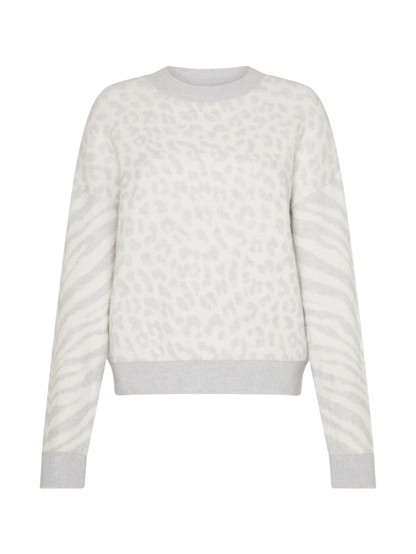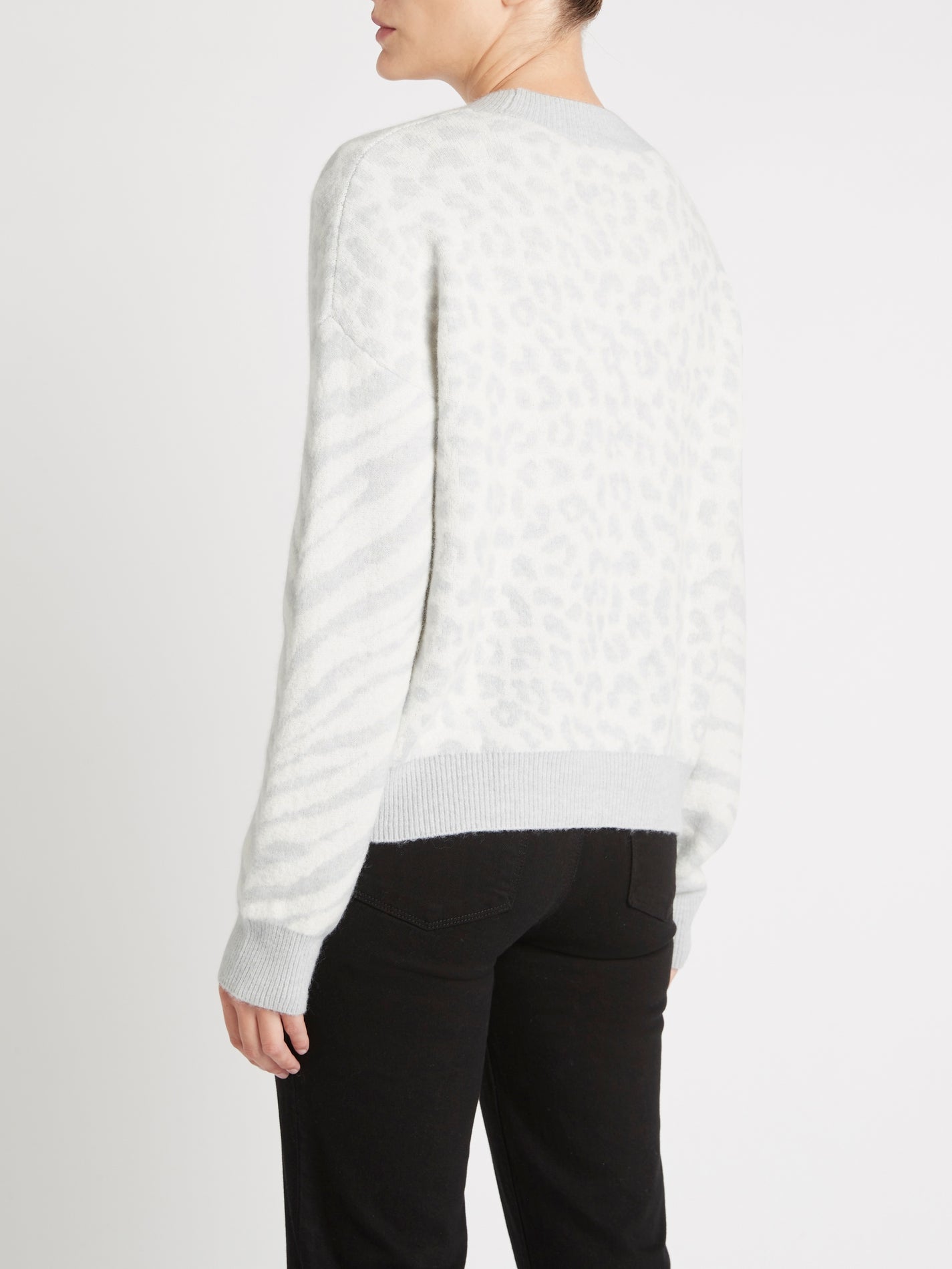 The Rails LA Lana Sweater in Ivory Grey Mixed Animal is made from 59% Polyamide, 23% Viscose, 10% Merino Wool, 5% Cashmere, 3% Elastane