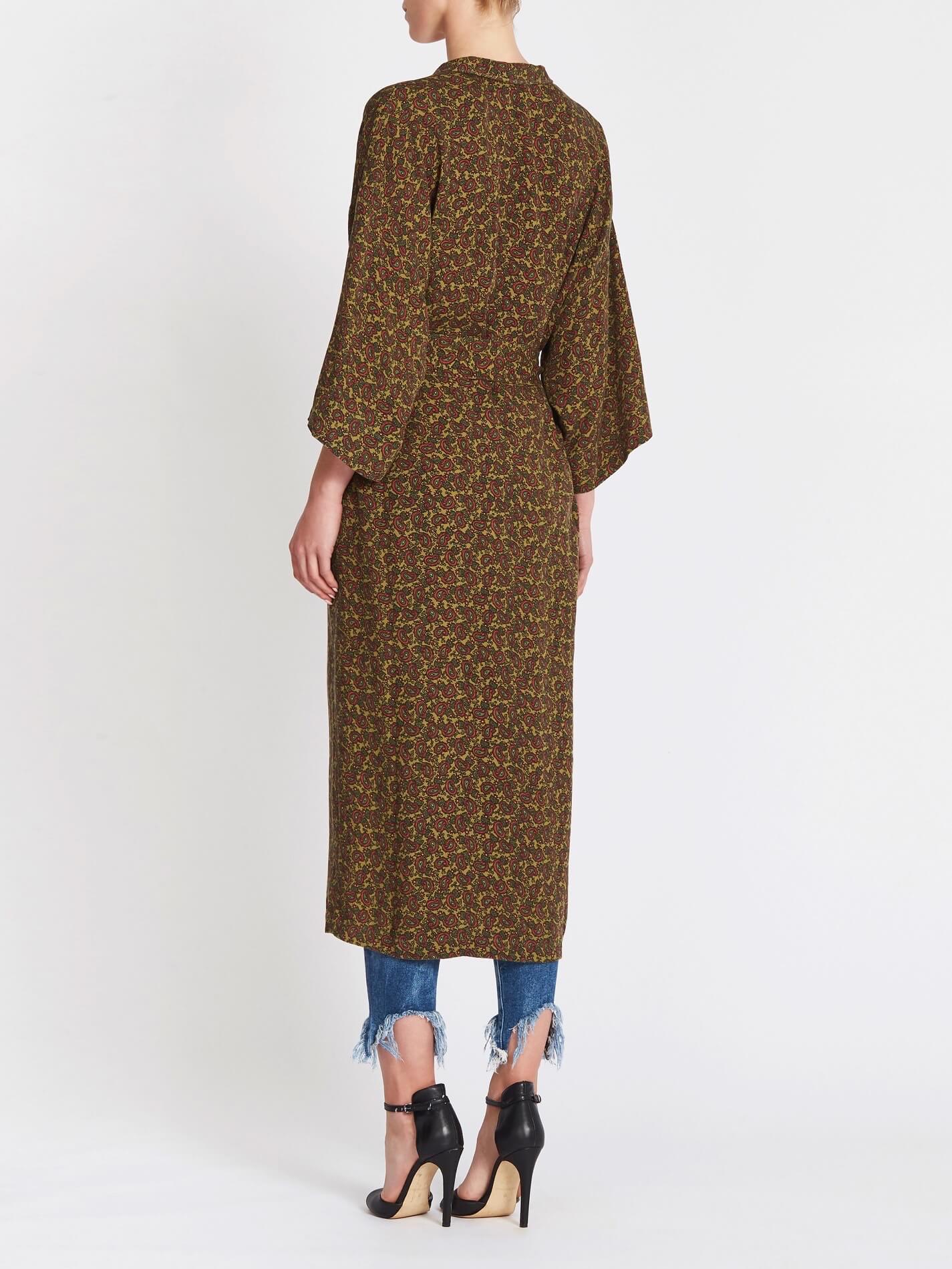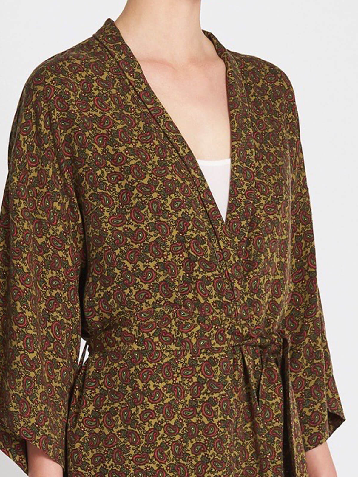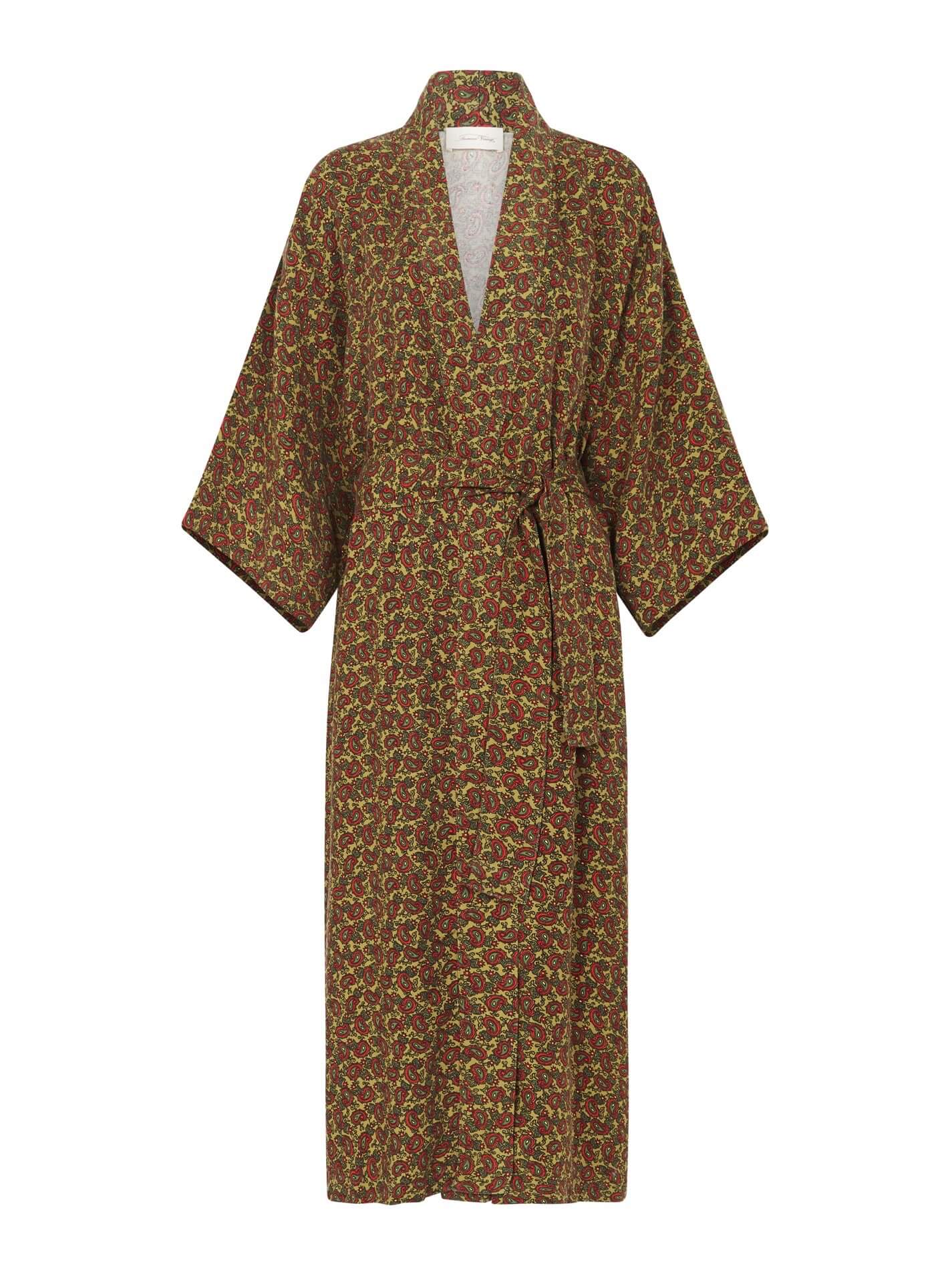Pretty in paisley, the long Cashmere coloured Janebay Coat by American Vintage. This loose bohemian style features flowy three quarter length sleeves and a fabric belt. Perfect for throwing over a chic chemise or grunge it up with a silken cami and some well loved leather pants.