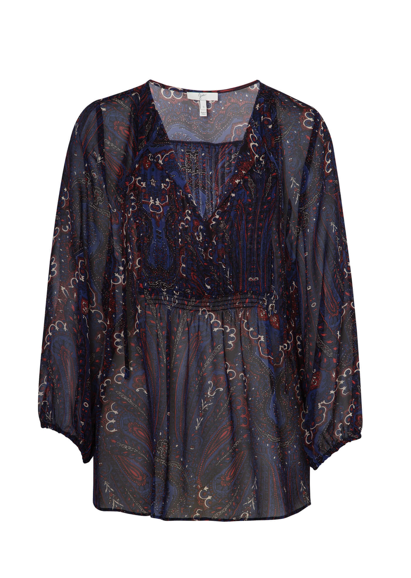 The Joie Vandrea Paisley Print Sheer Blouse in Deep Sapphire is made from 100% Silk