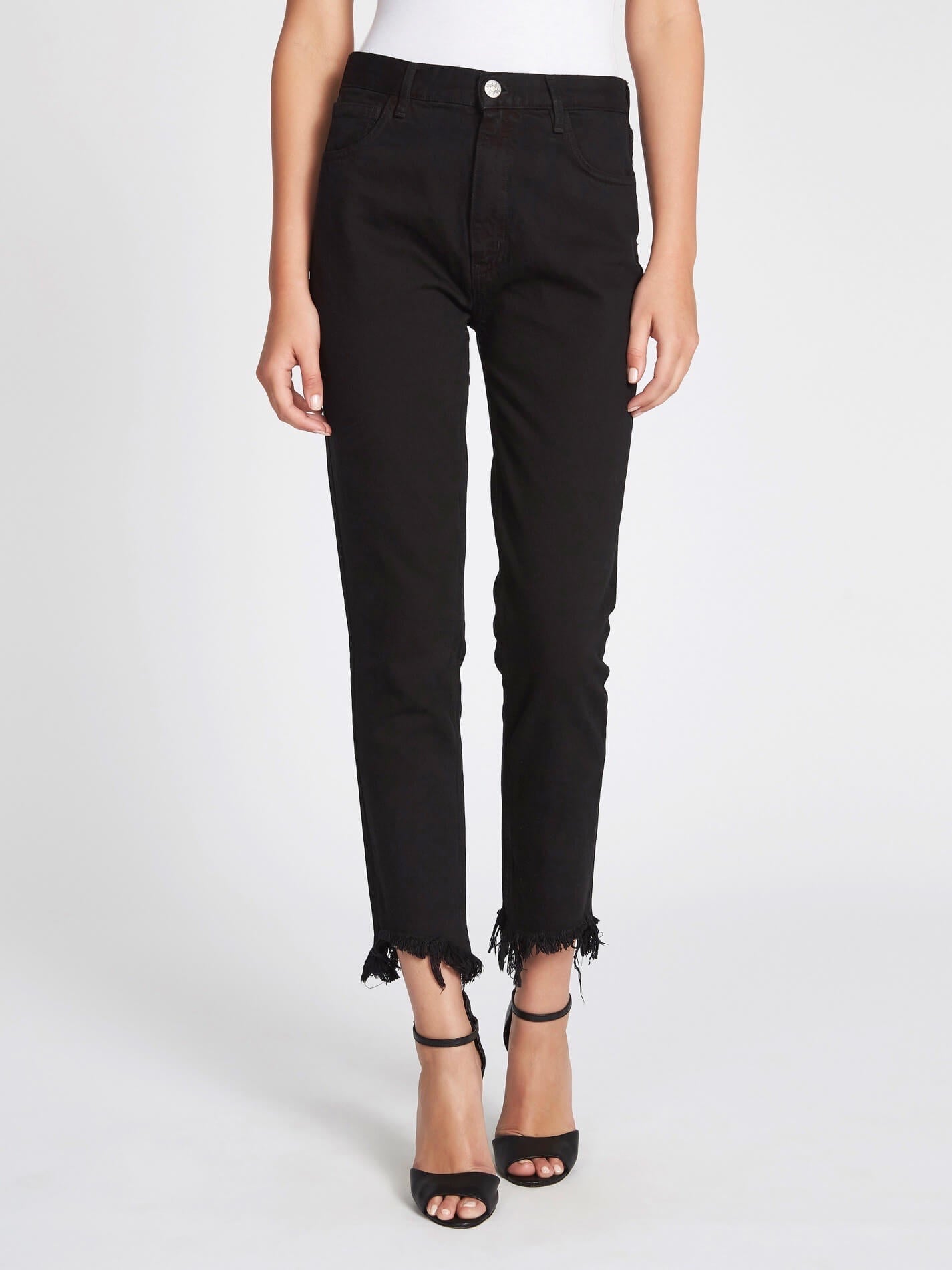 For the perfect slim leg black jeans with a cool girl twist, look no further than the M.I.H Jeans Mimi Jeans. Constructed in 100% cotton these high rise jeans have an authentic 5-pocket construction and feature a single button zip closure and a cropped, curved hem that has been cut raw with fraying detail. Team yours with heeled black boots, a tee and leather moto jacket and you’ll have the perfect street wear style in no time.