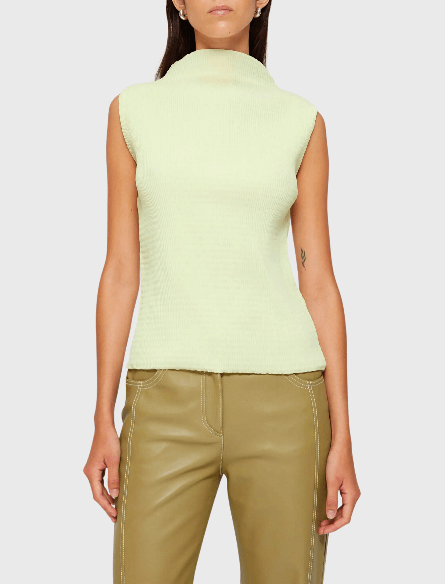 The RÓHE Sleeveless Textured Top in Light Yellow fits true to size