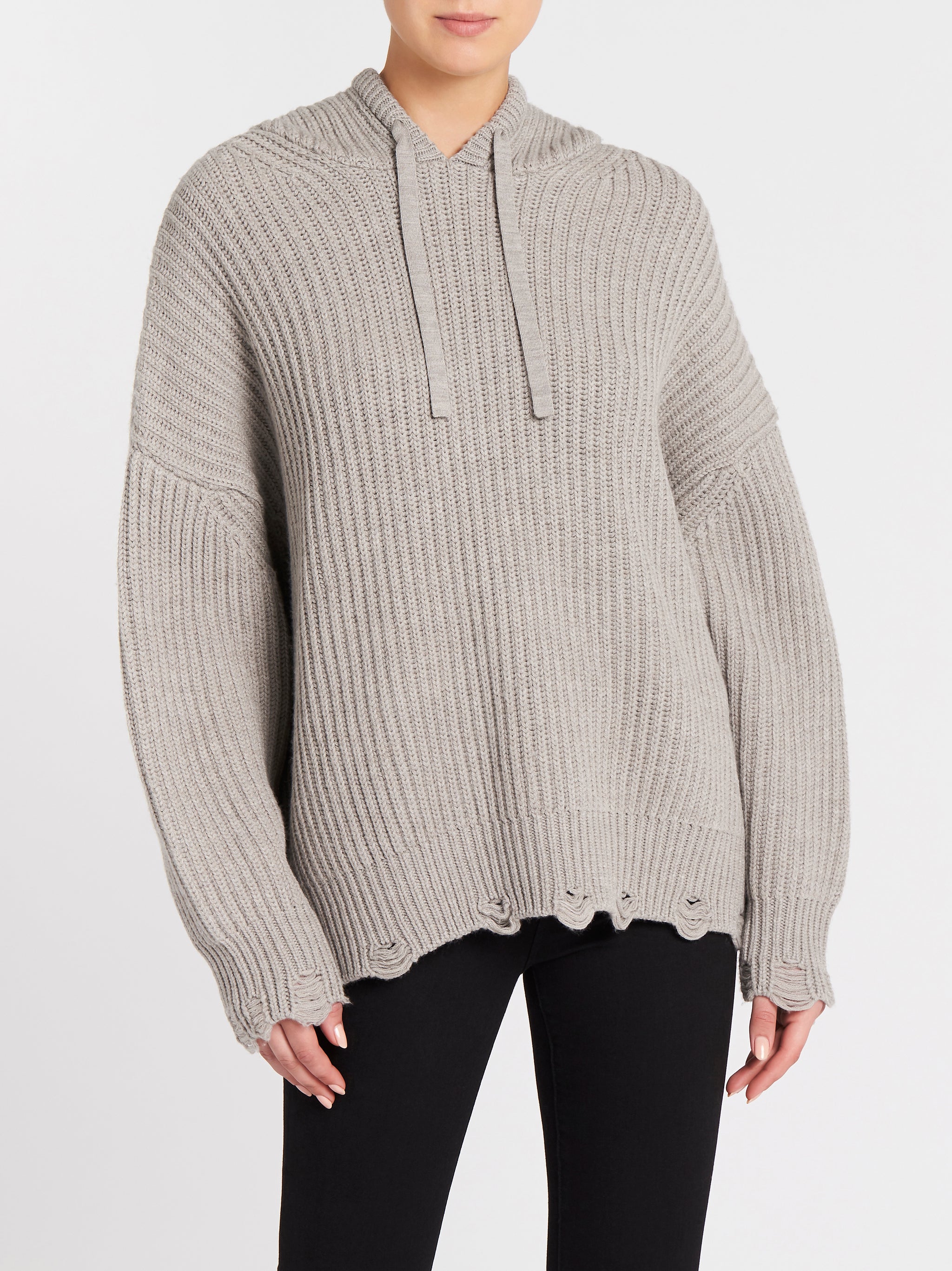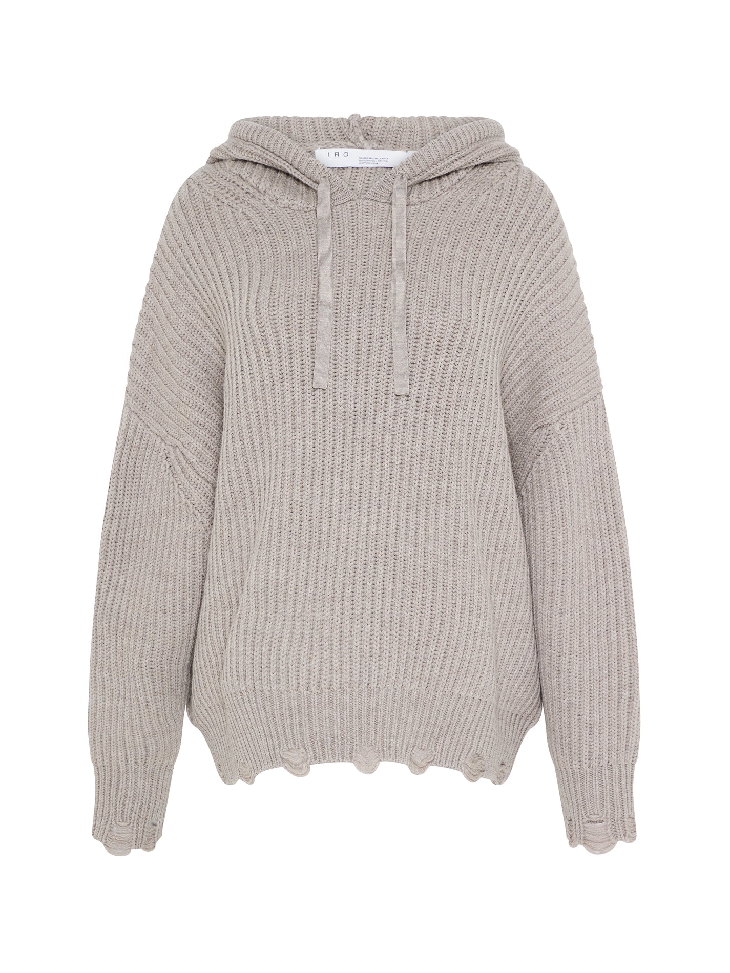 The Haedi Sweater in Beige Stone Grey by IRO is your perfect weekend sidekick. Constructed from ultra soft merino wool this hooded sweater features and oversized cut with an adjustable drawstring cord and is finished with distressed cuff and hemline details. Pair back with a black skinny jean for a rock and roll edge.