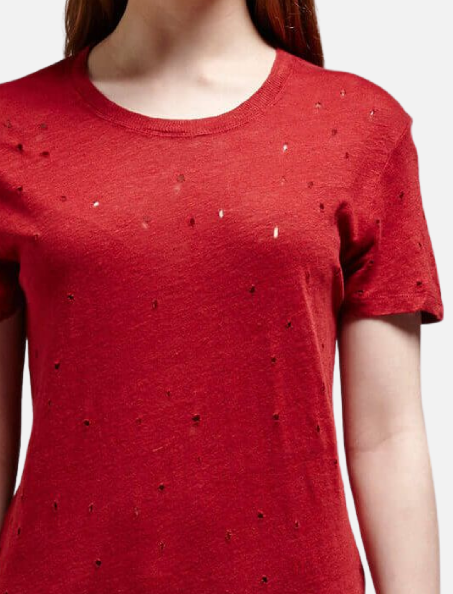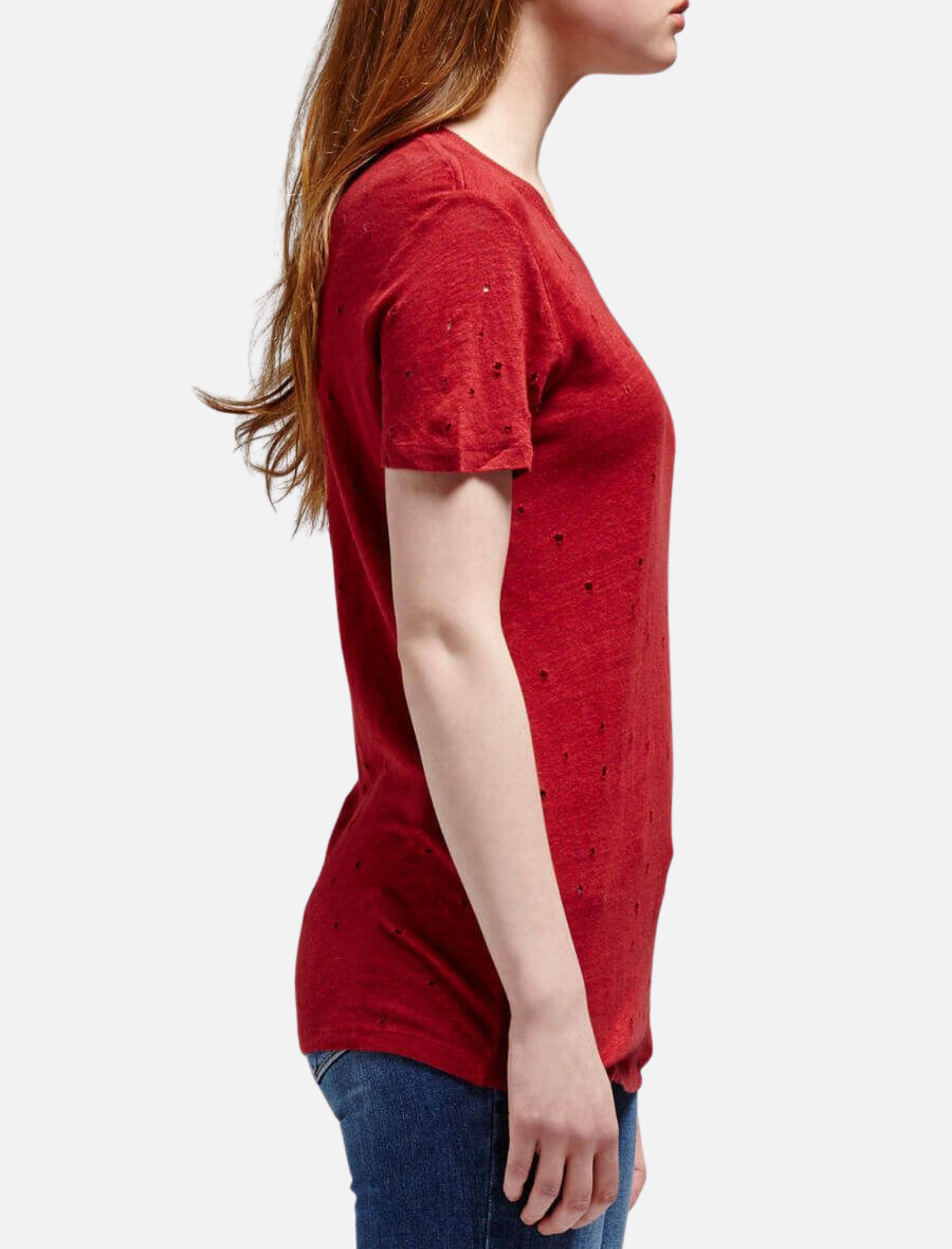 The IRO Clay Tee in Cherry Red is made from 100% Linen
