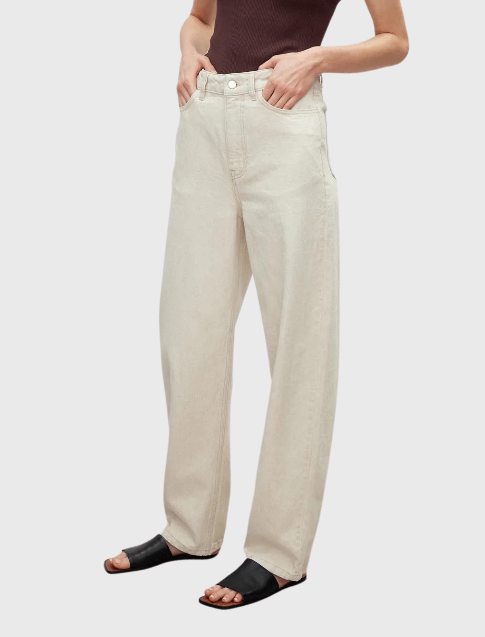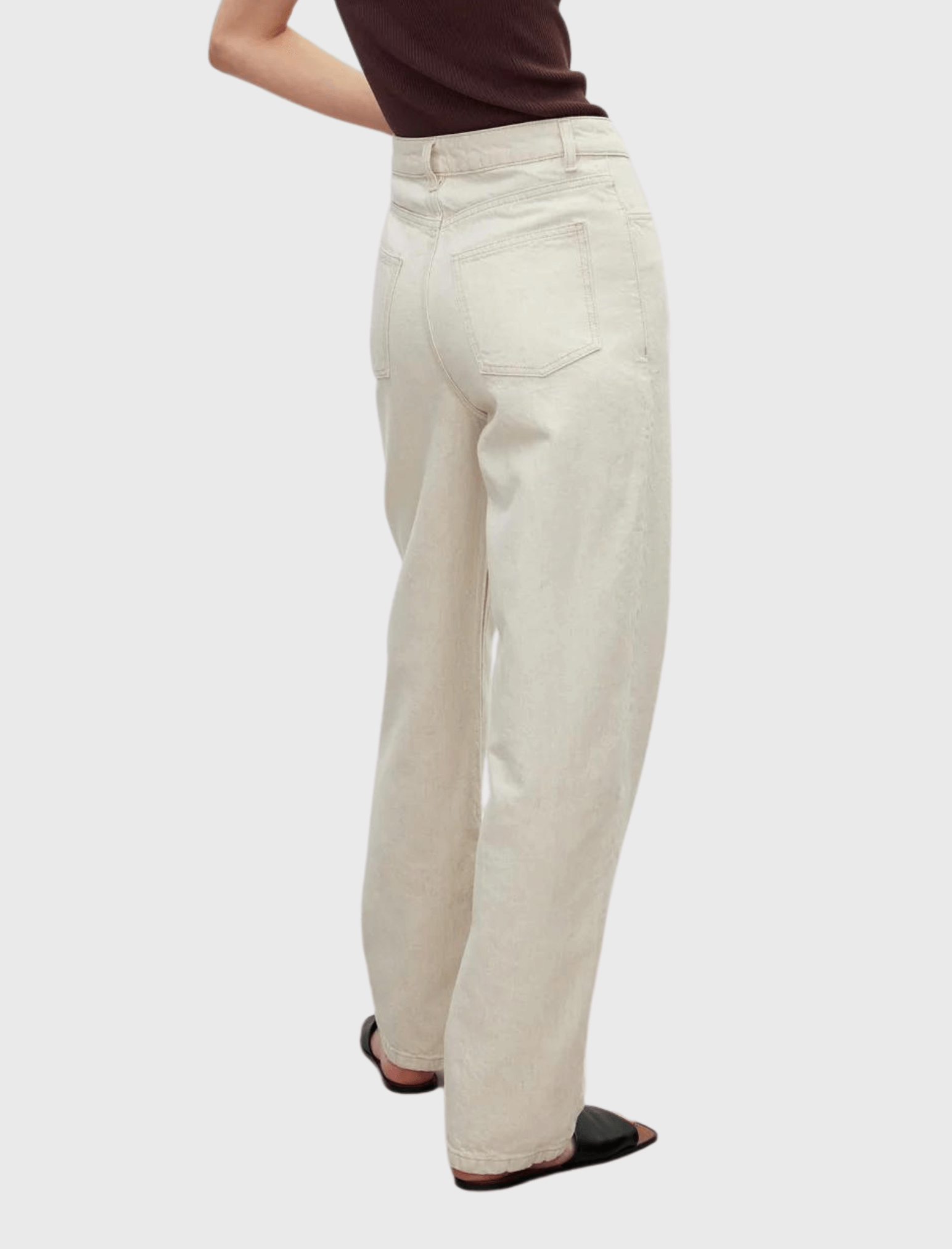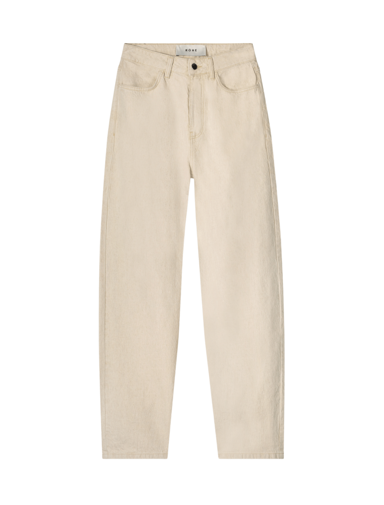 The Róhe Dewi Trouser in Natural Hemp Denim is made from 50% Hemp, 50% BCI Cotton