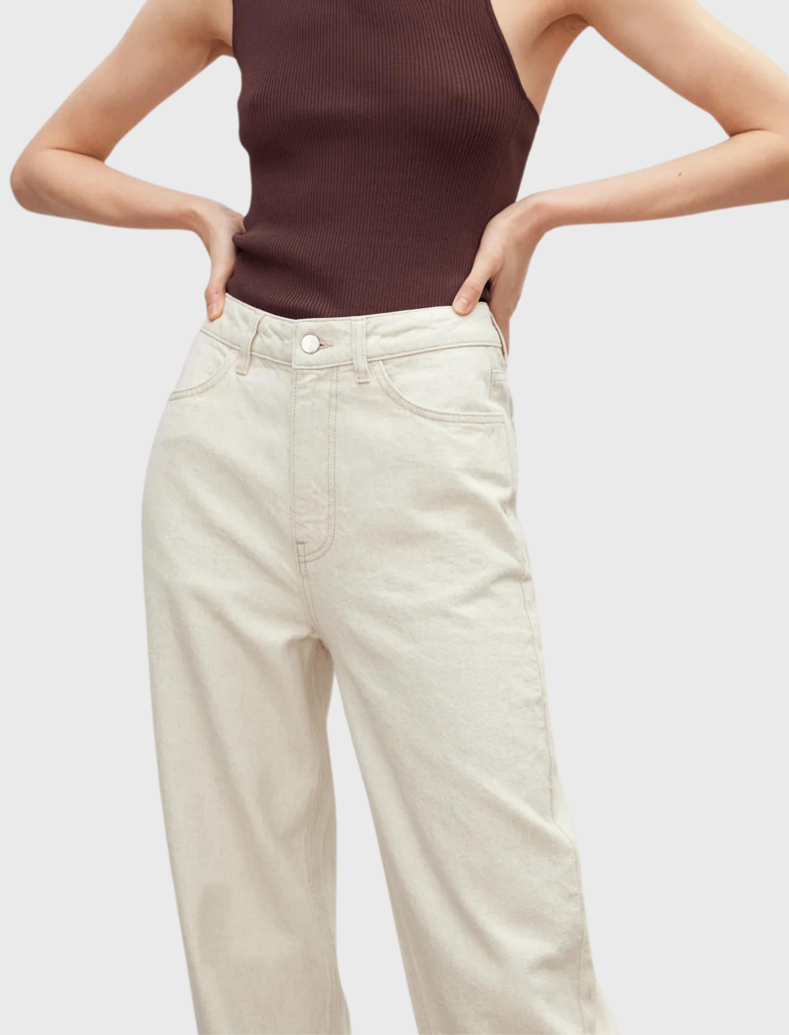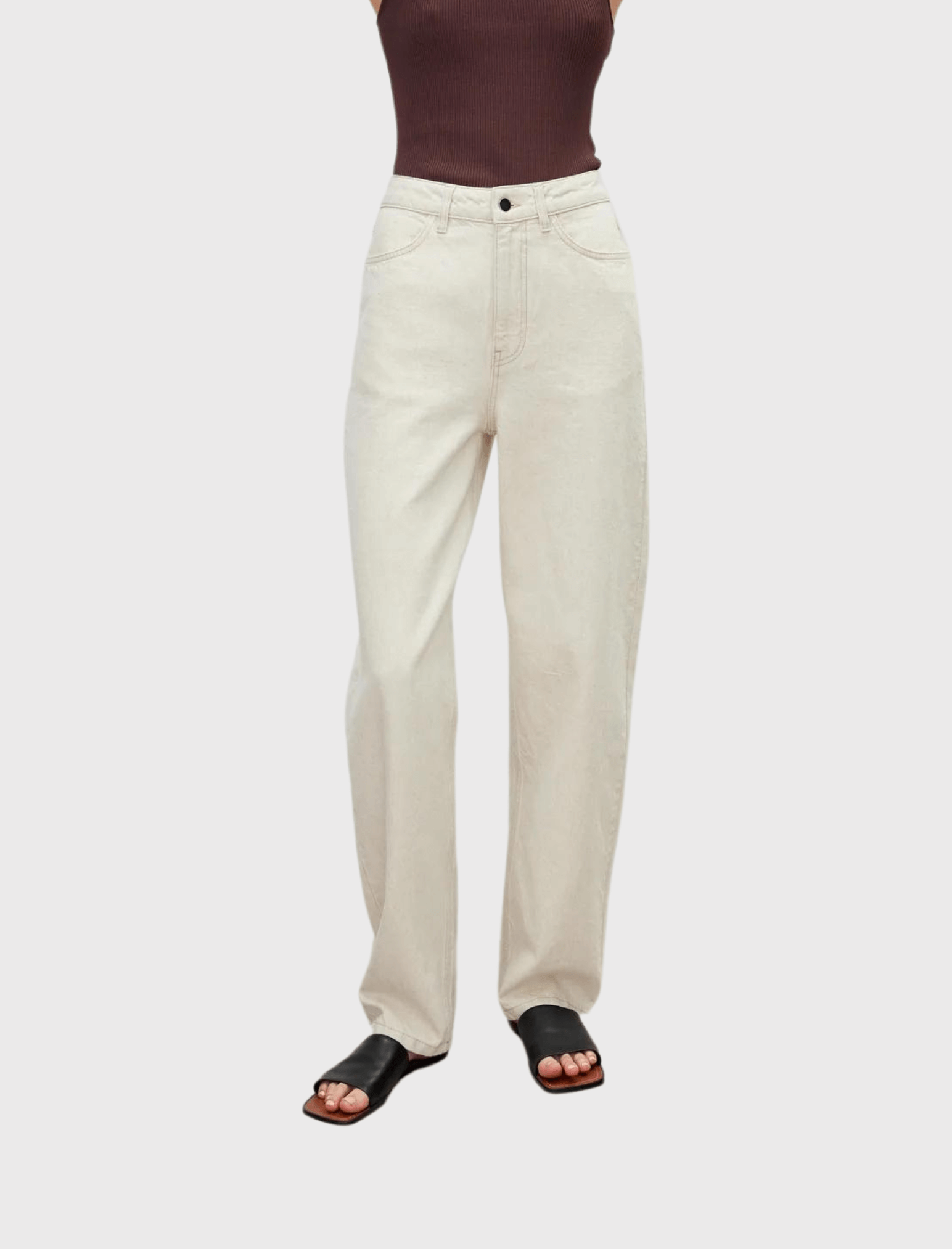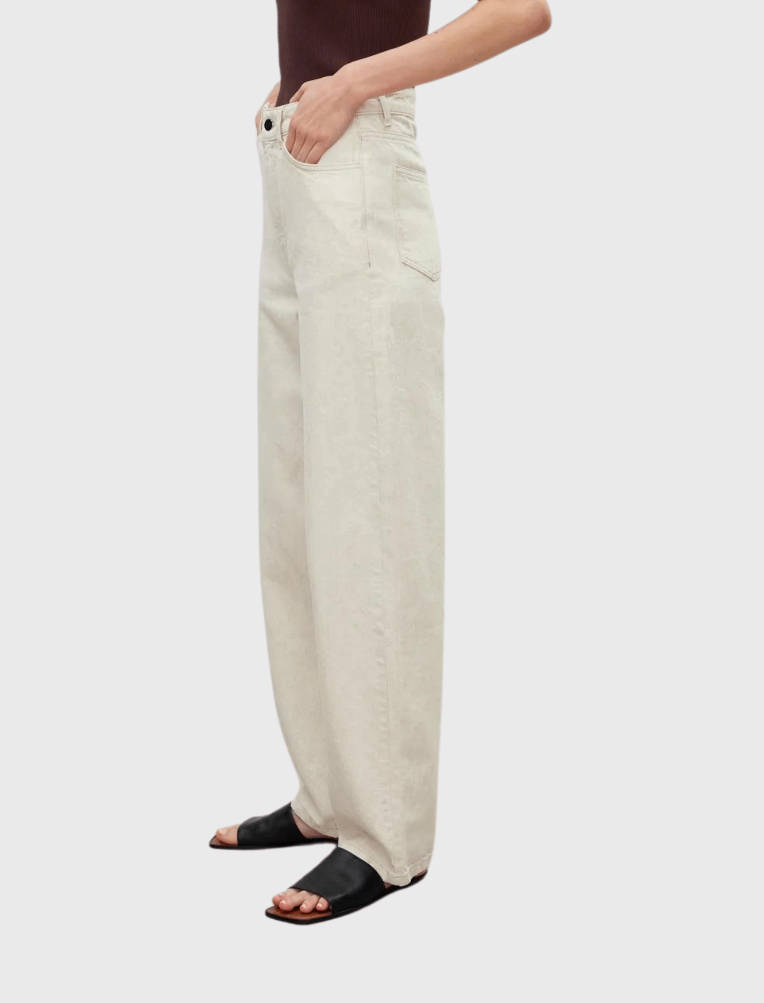 The Róhe Dewi Trouser in Natural Hemp Denim is made from 50% Hemp, 50% BCI Cotton
