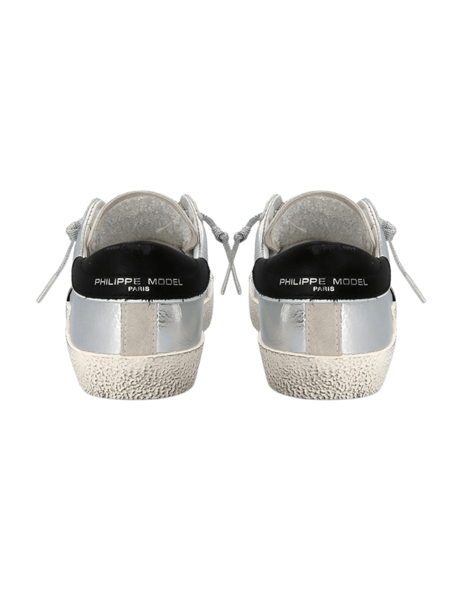 The Phillipe Model Prsx Low Sneaker in Metal Argent Mix is made from 100% genuine leather and suede upper, leather inner and a rubber sole