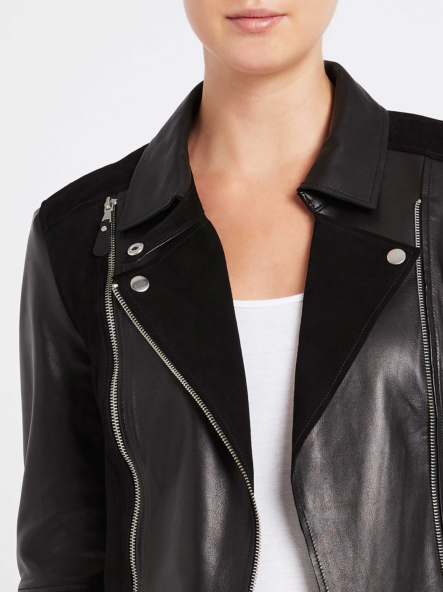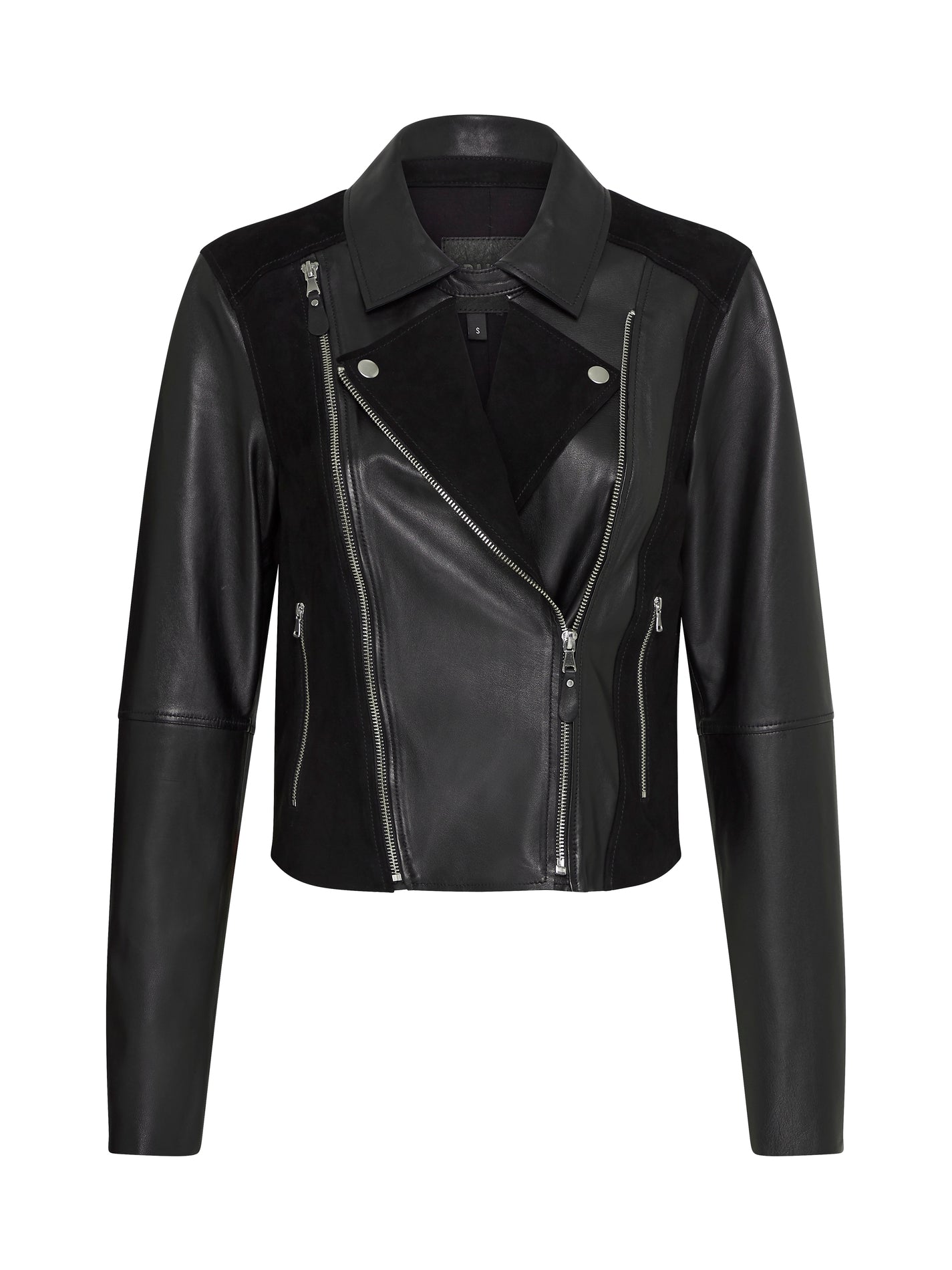 The Paige Silvie Jacket in Black is made from 100% Genuine Leather with a 95% Rayon and 5% Spandex Lining