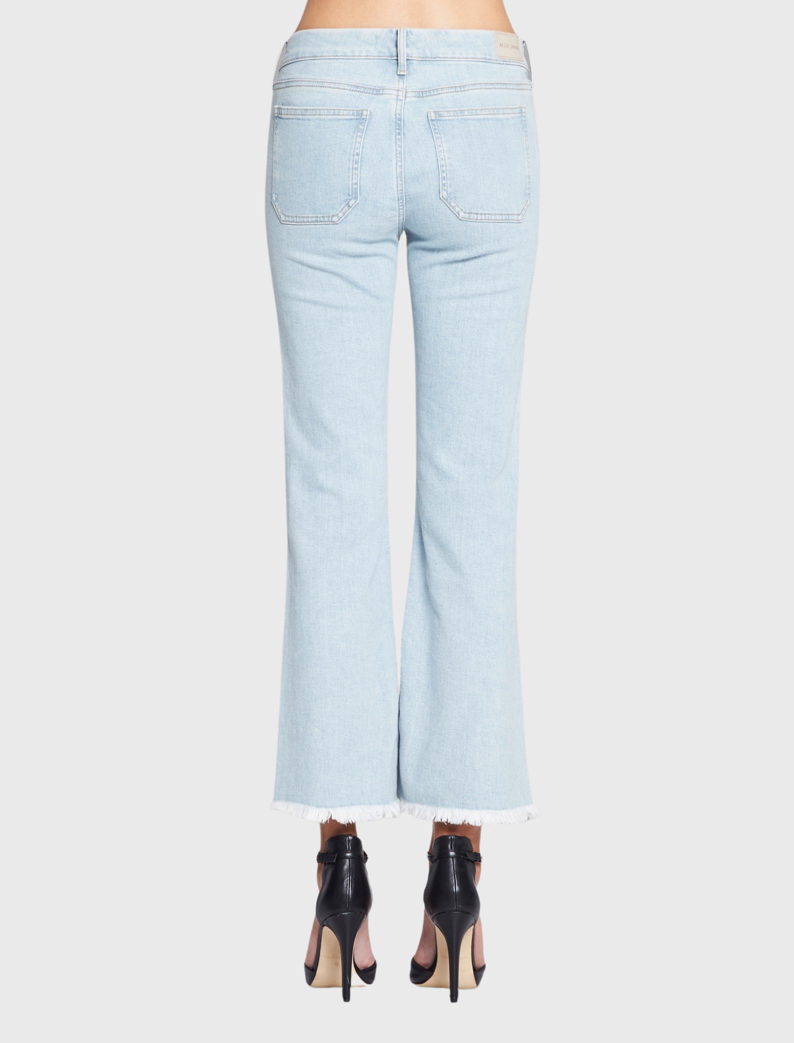 Add some 70's flare to your wardrobe with the M.I.H Jeans Lou Jeans. These jeans have been constructed using a stretch cotton blend fabric in pure indigo that has been strongly faded all over, creating a light blue wash and are finished with a zip fly and single button closure. Featuring raw cut hems that create a deep fray, these flare style jeans are both ultra cool and ultra comfy.