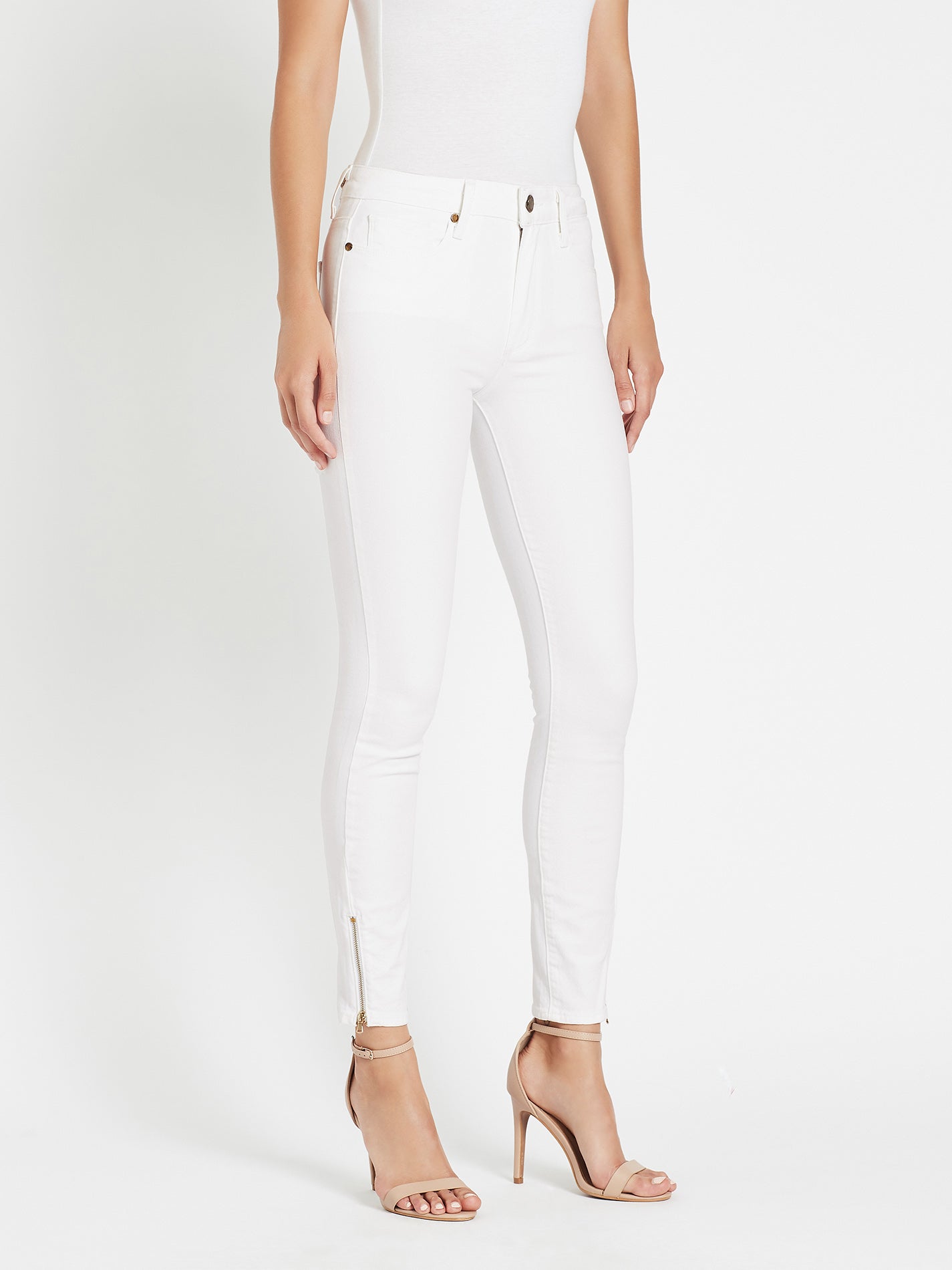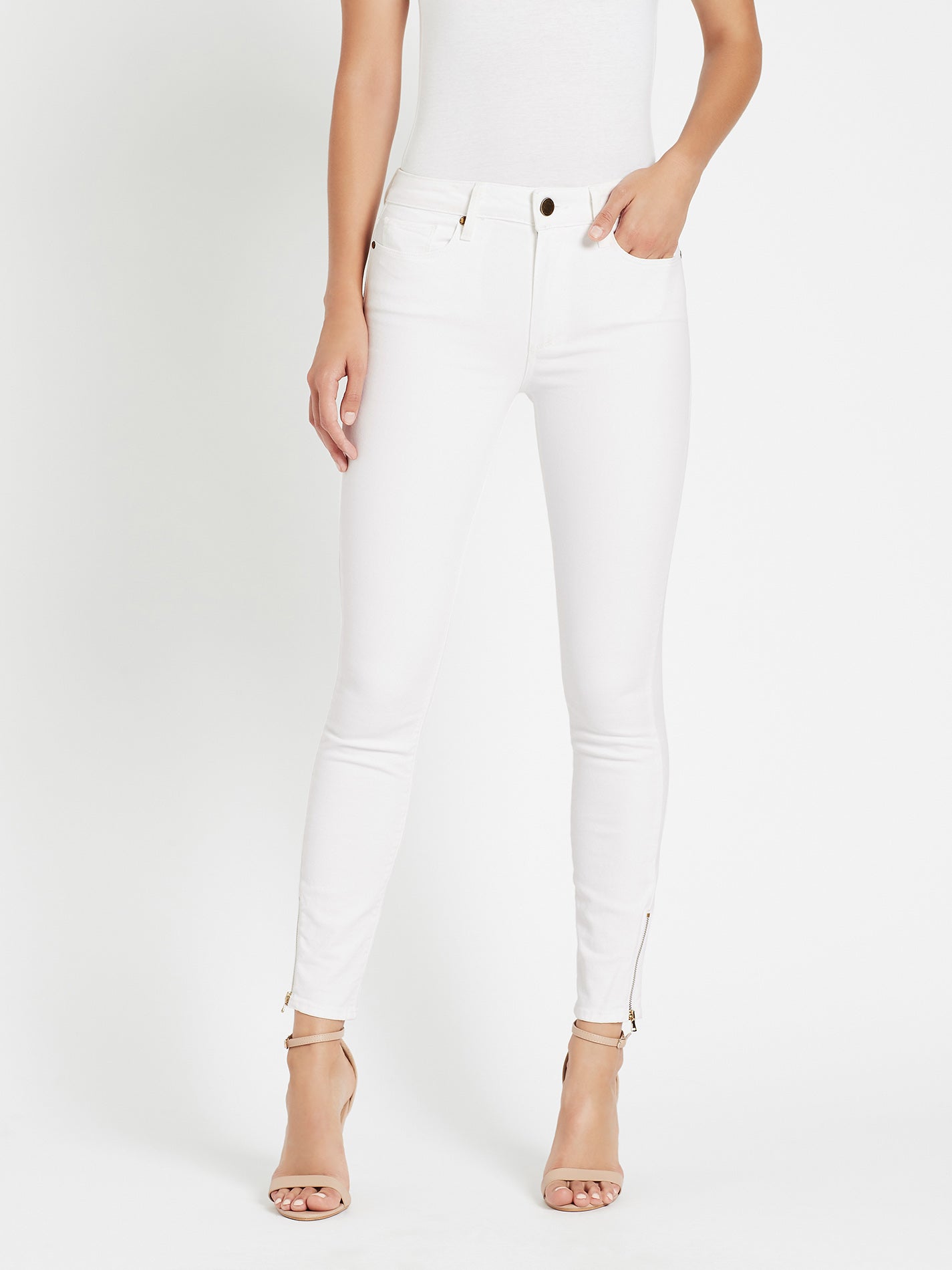 Paige's Hoxton Ultra Skinny High Rise in Optic White are a super soft skinny fit jean, featuring gold hardware and ankle zip closures. They have a 9.5 inch high rise and clean look back pockets.