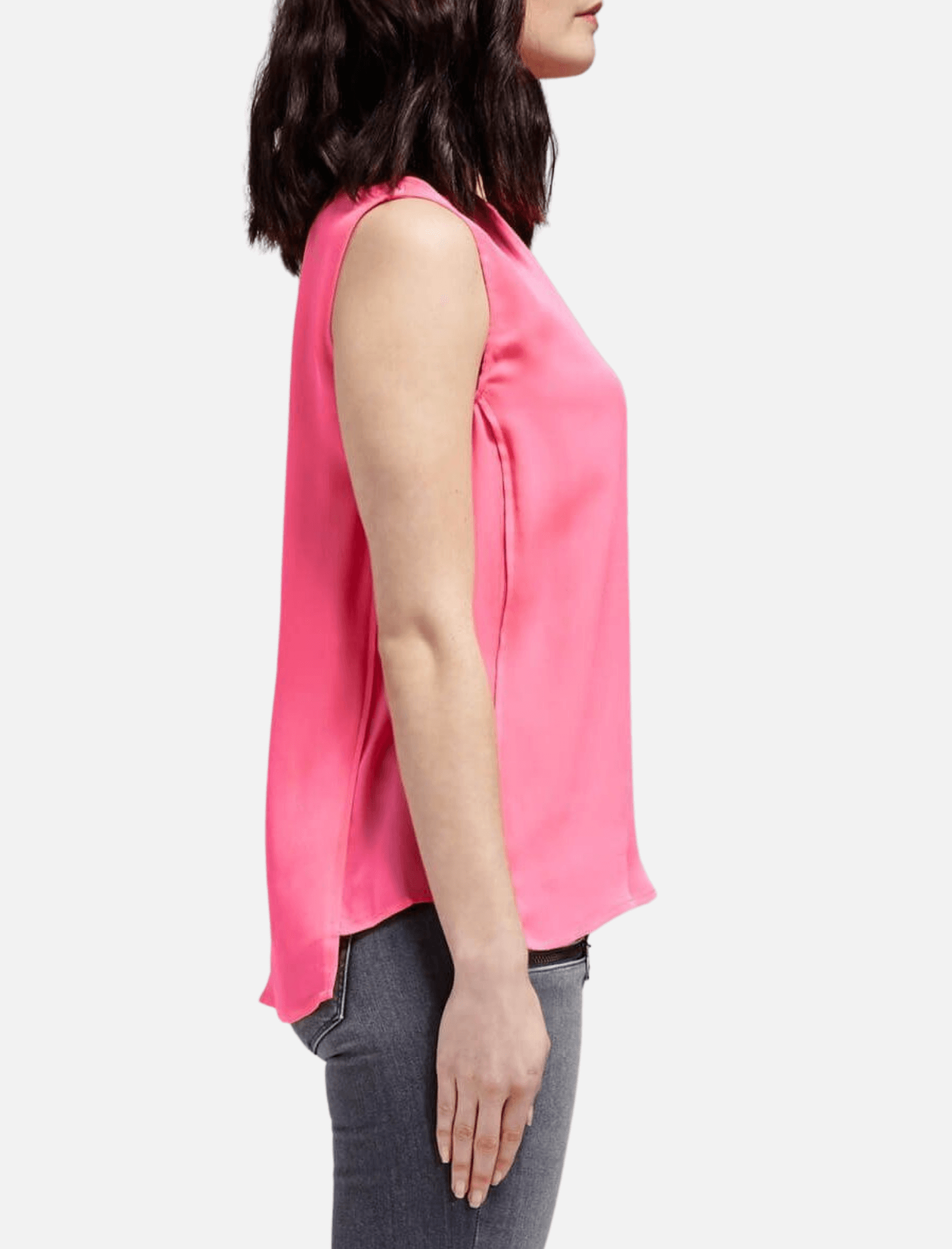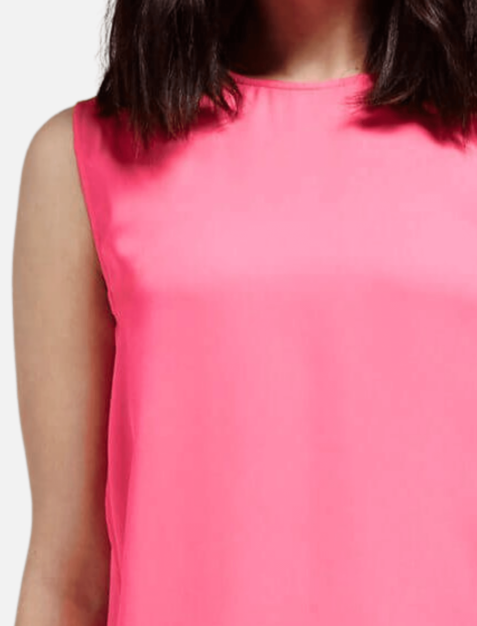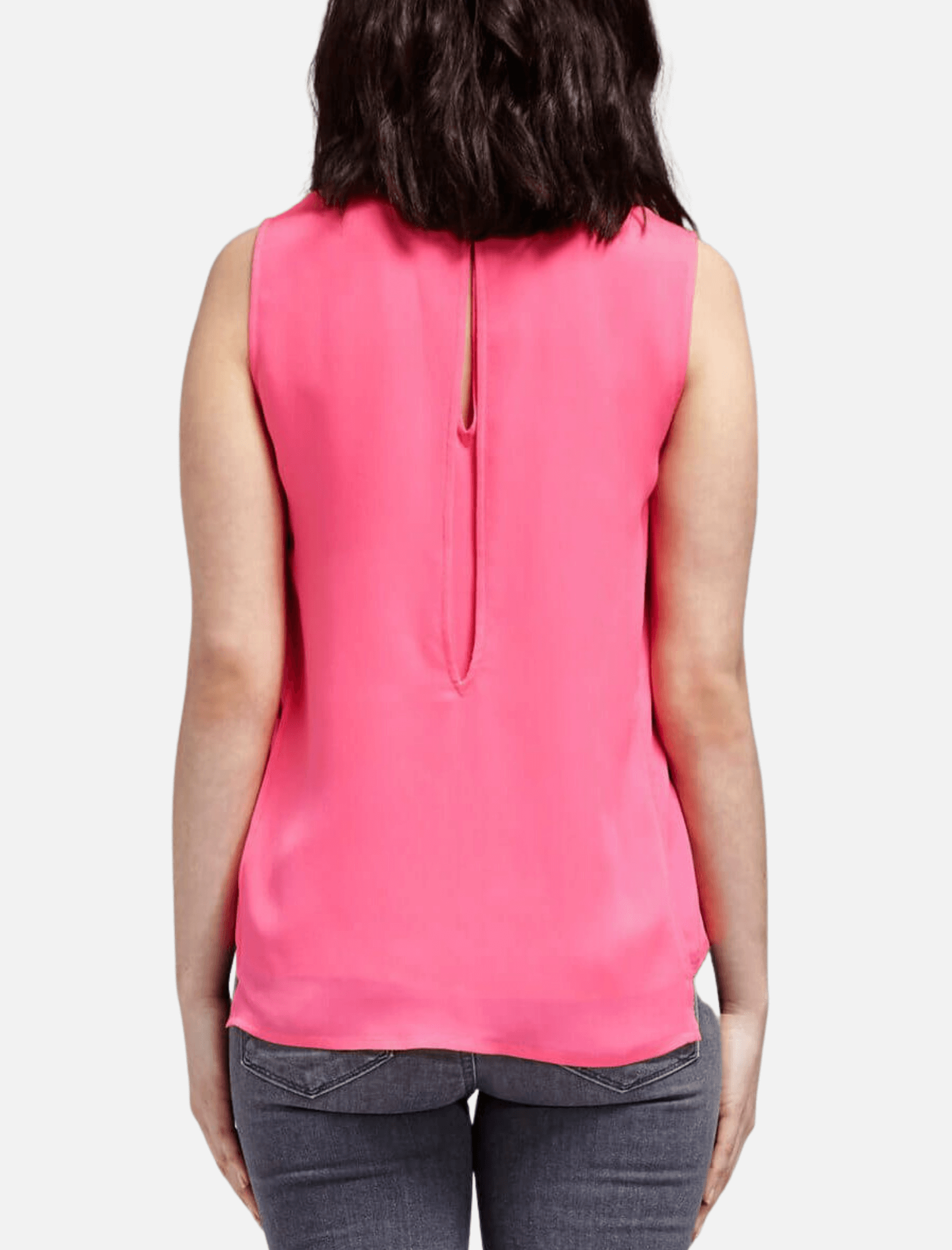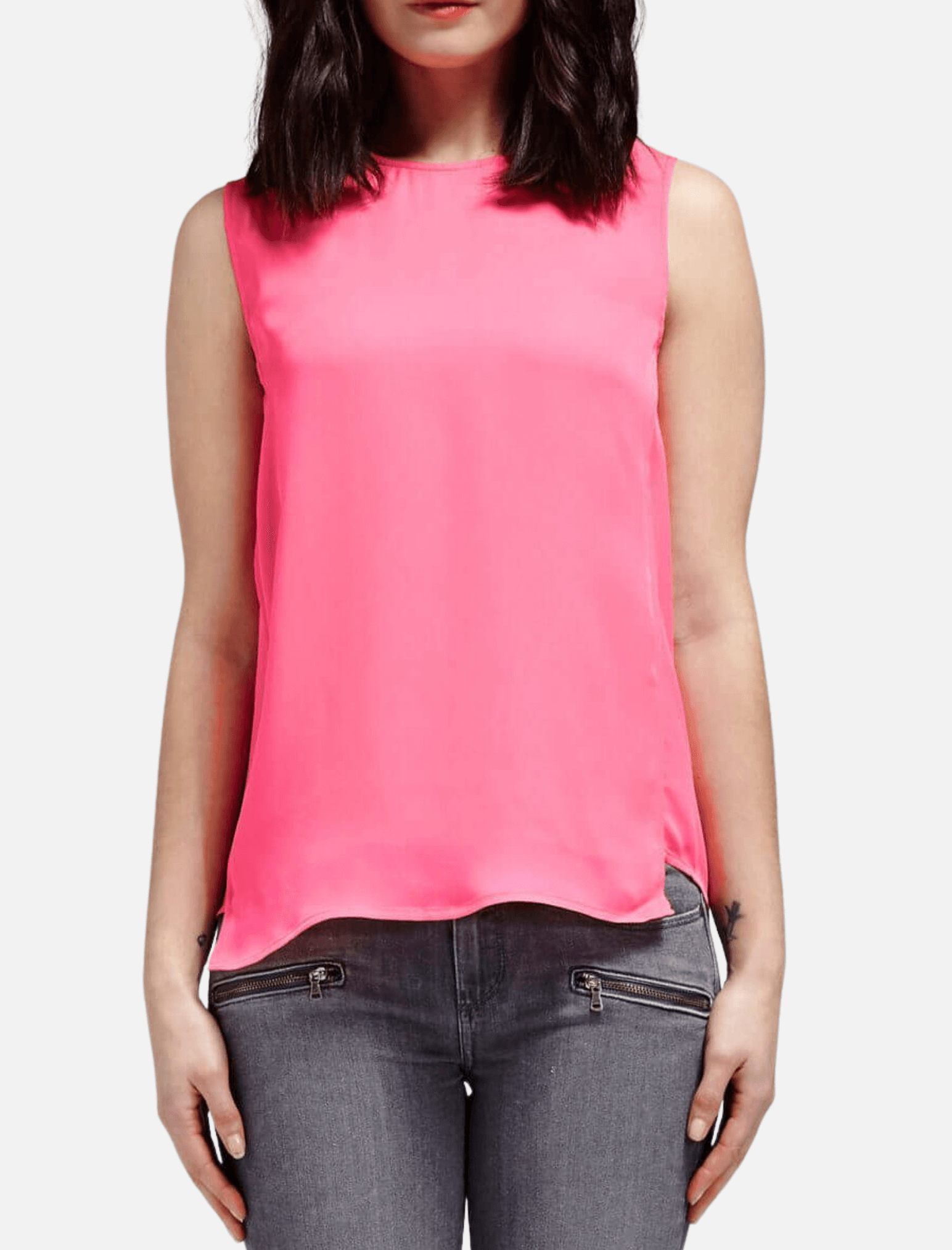 Rebecca Minkoff’s Walter Top is a silk sleeveless crew neck top. This feminine fluoro pink top is accented by back keyhole detail and a concealed snap closure