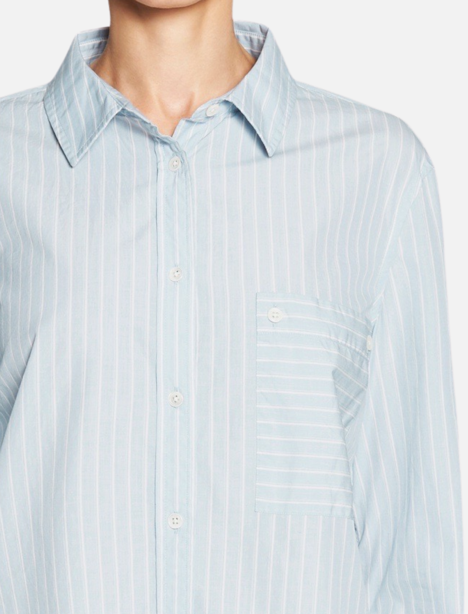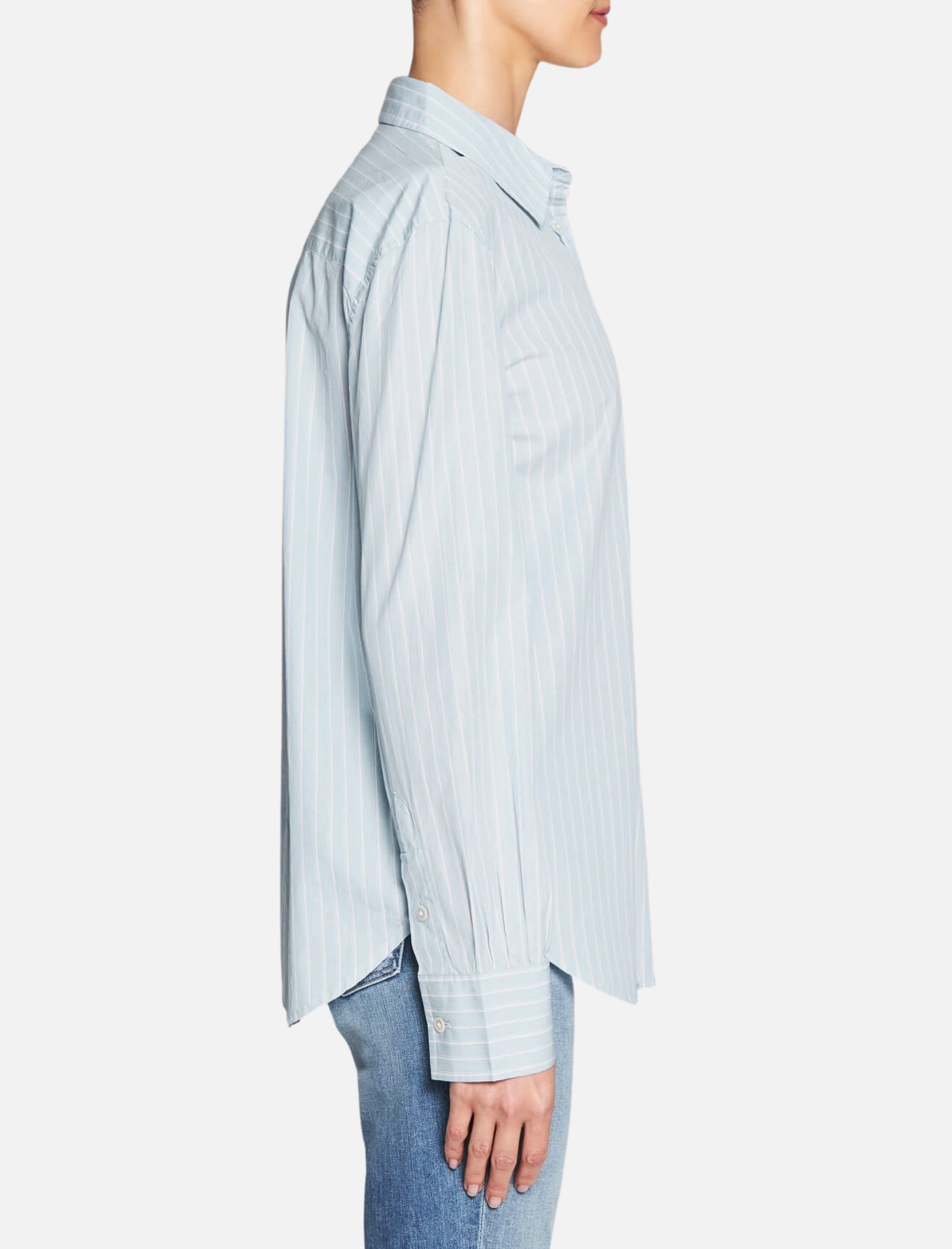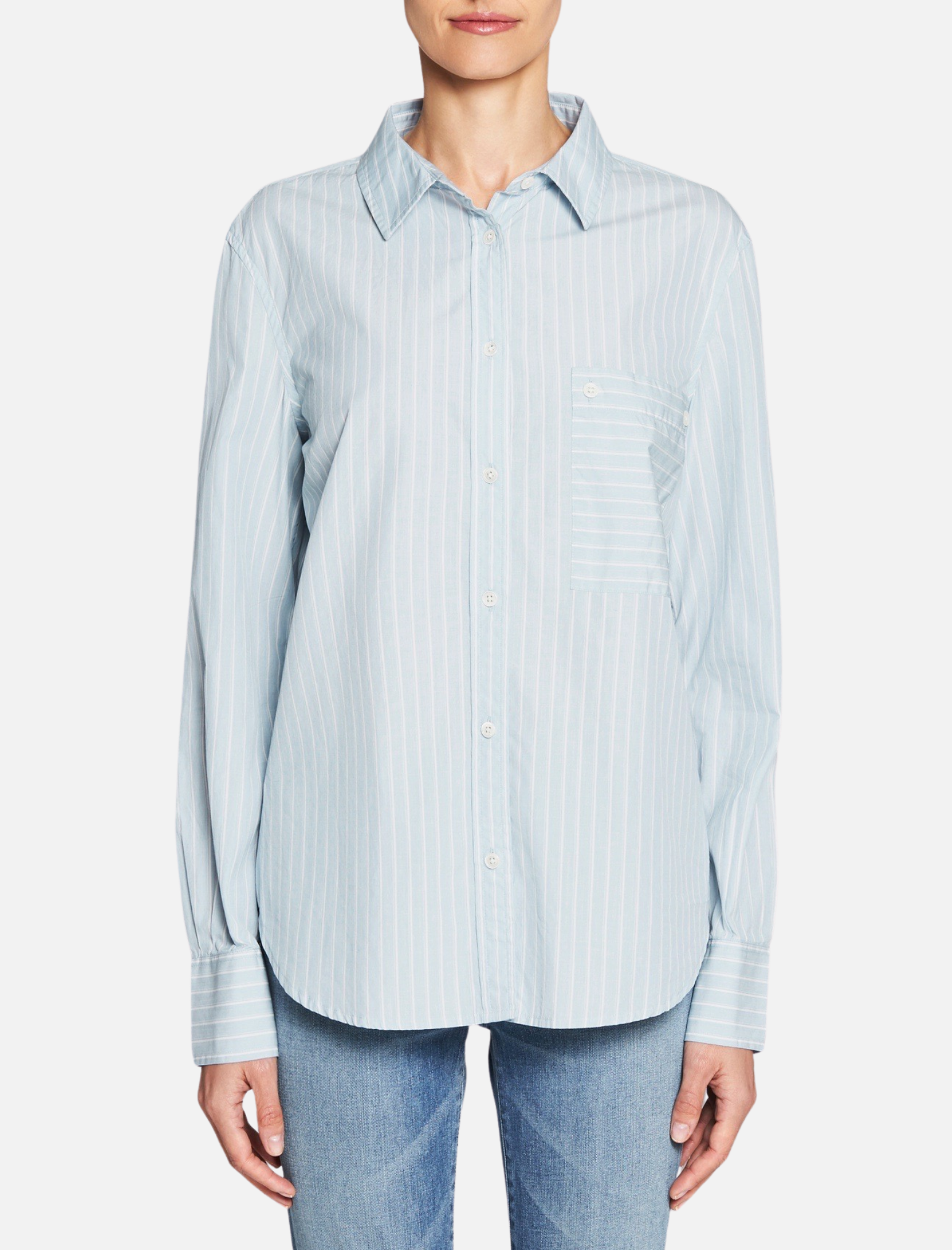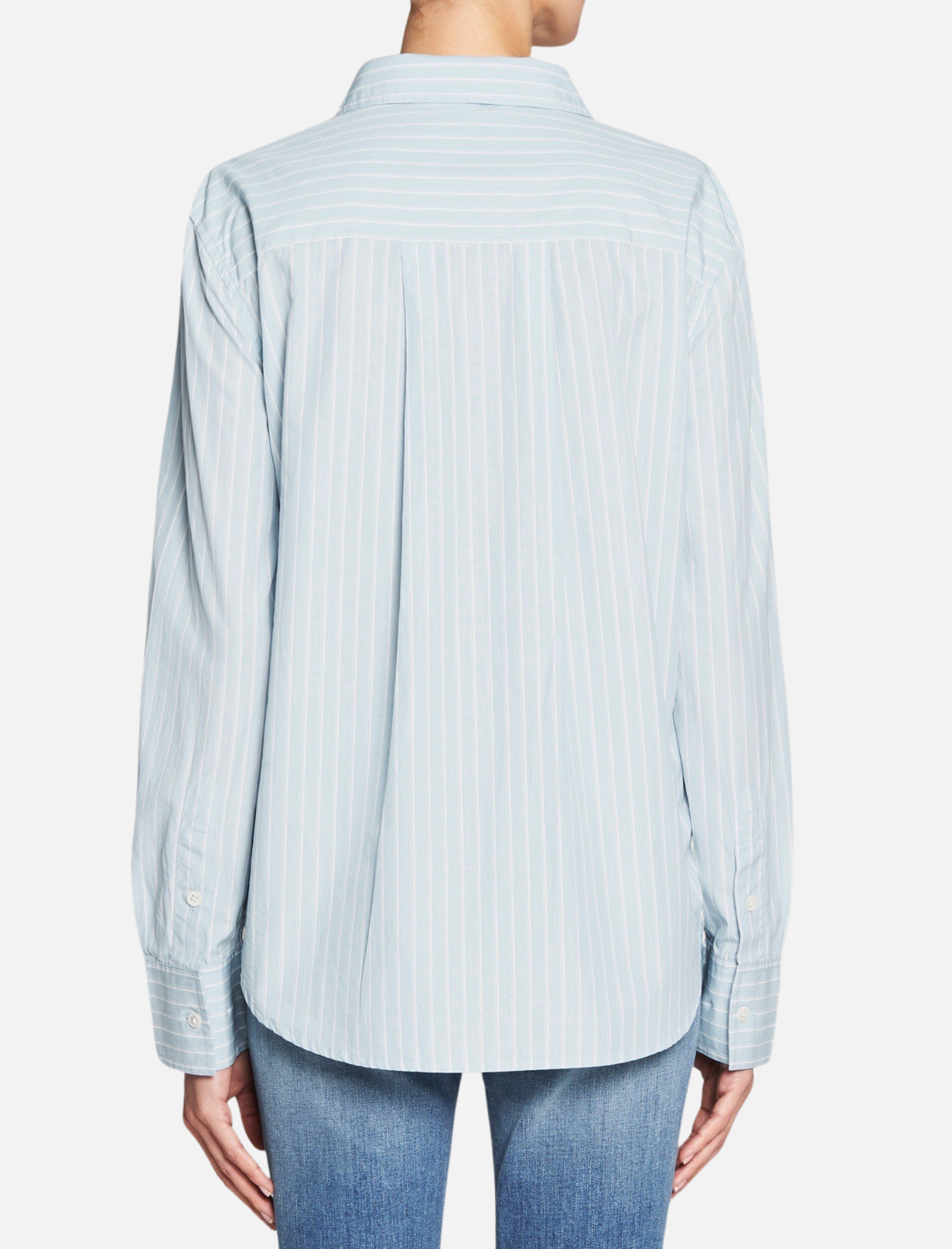 The Frame Denim Boyfriend Poplin Shirt in Sky / Blanc is made from 100% Cotton