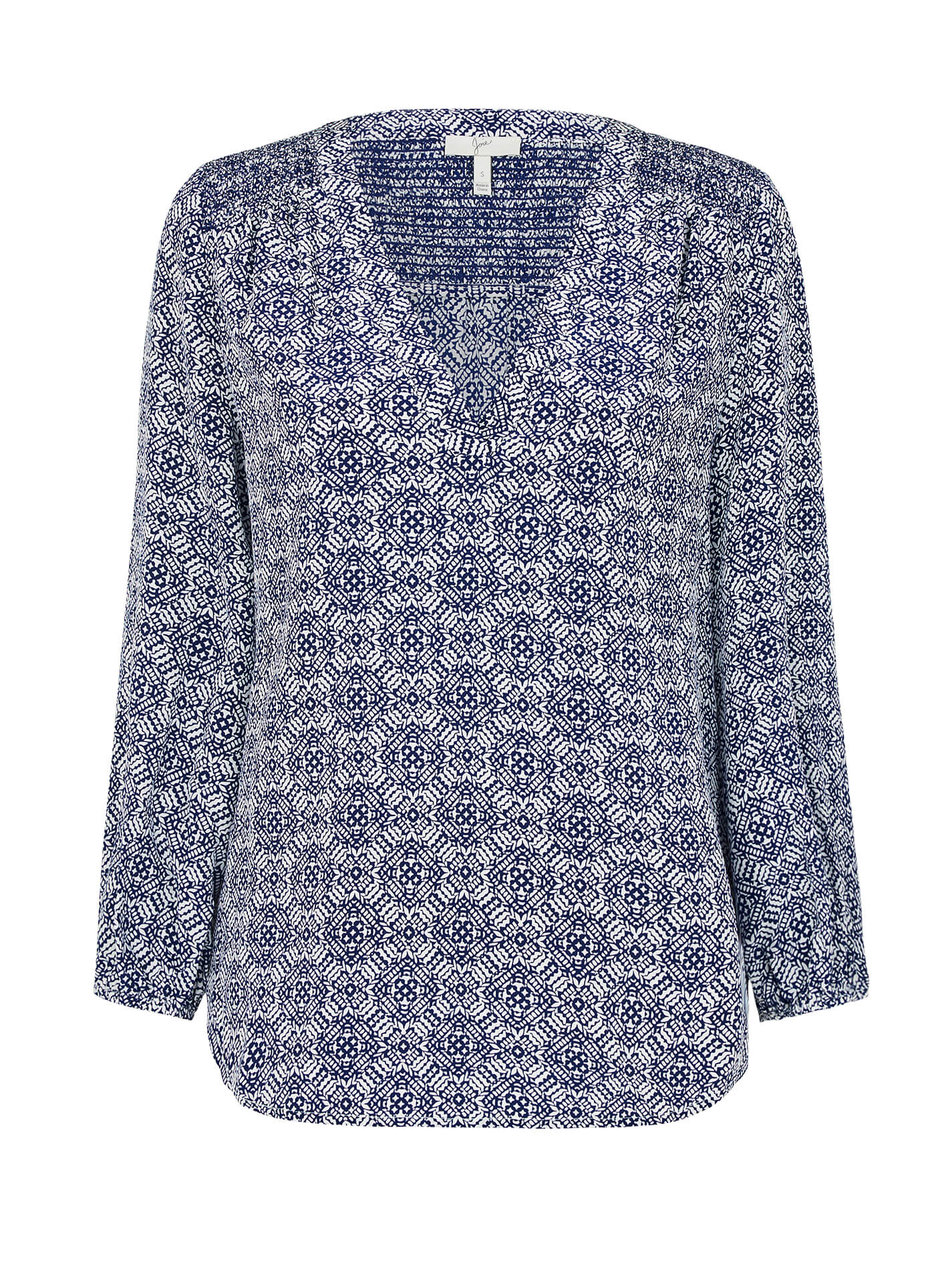 The Joie Axel Printed Blouse in Blueprint is true to size