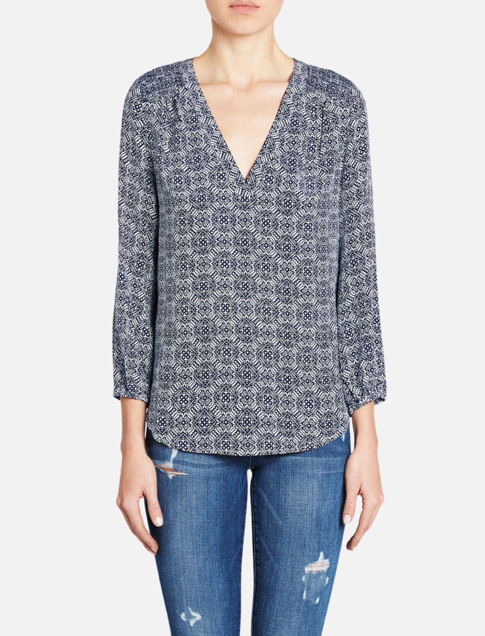 The Joie Axel Printed Blouse in Blueprint is made from 100% Silk