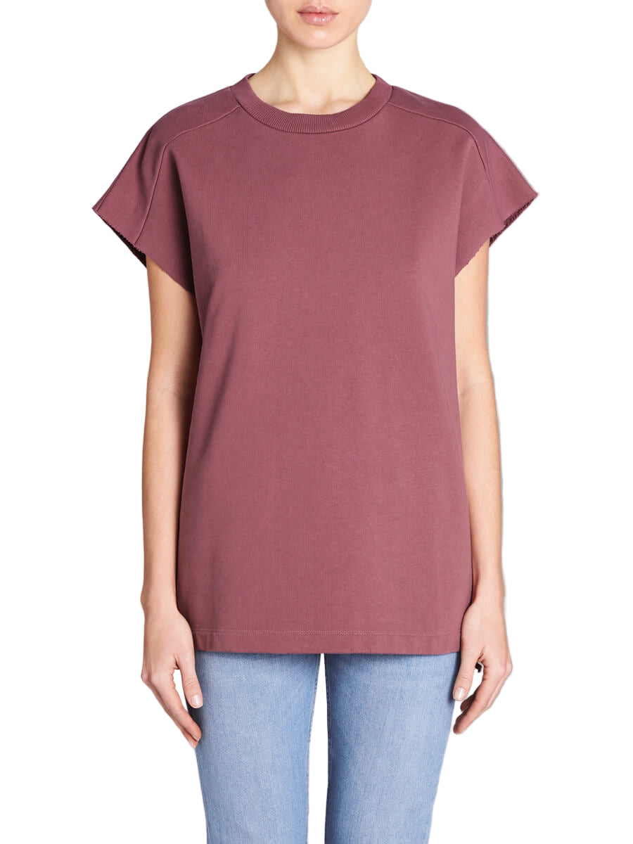 A stylish take on a casual classic, the IRO Jeans Roldan Top is a slim, boxy-fitting tee style in a pretty musk pink hue. This sweatshirt-style top is crafted with a comfortable french terry fabric and features a chic round neckline.