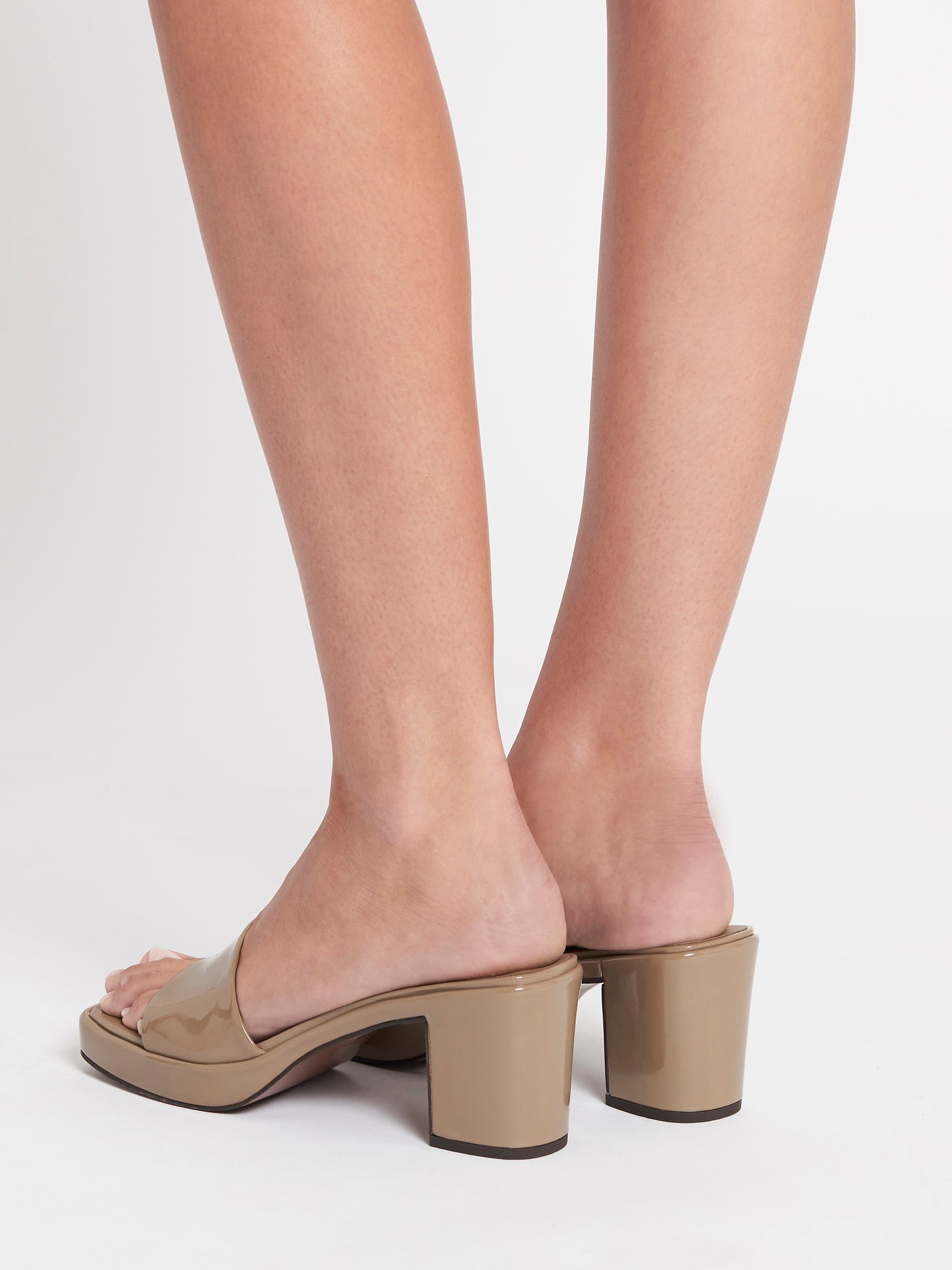 Groove is in the heart with the Senso Stevie Mule in Mushroom. This perfect neutral mossy grey in a shiny patent leather will match back with your beloved neutrals. A chunky retro inspired slip on heel, the Stevie will maximise both height and comfort while adding a 90's aesthetic to your outfit.