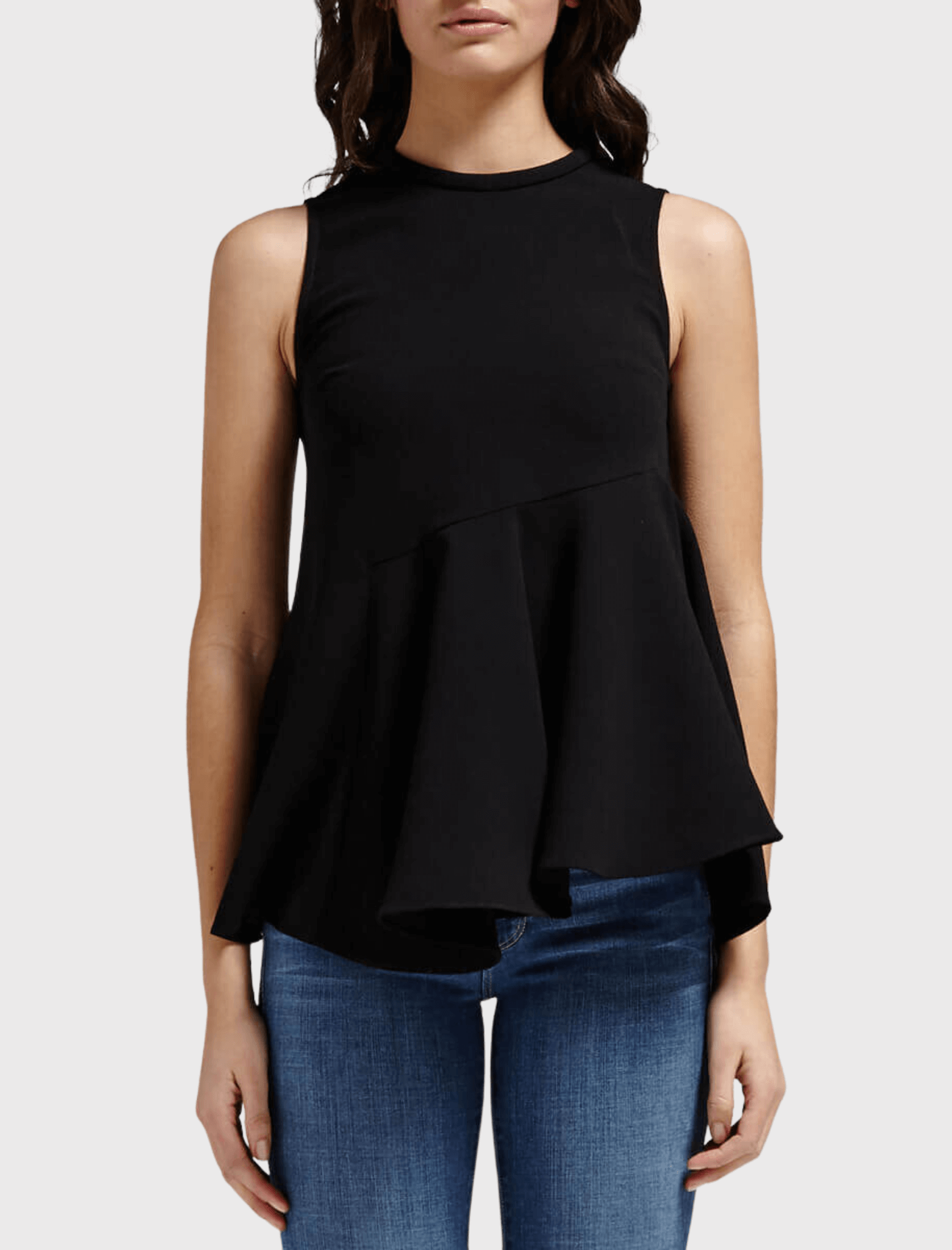 The Nicholas Crepe Flare Hem Tank in Black is made from 100% Polyester