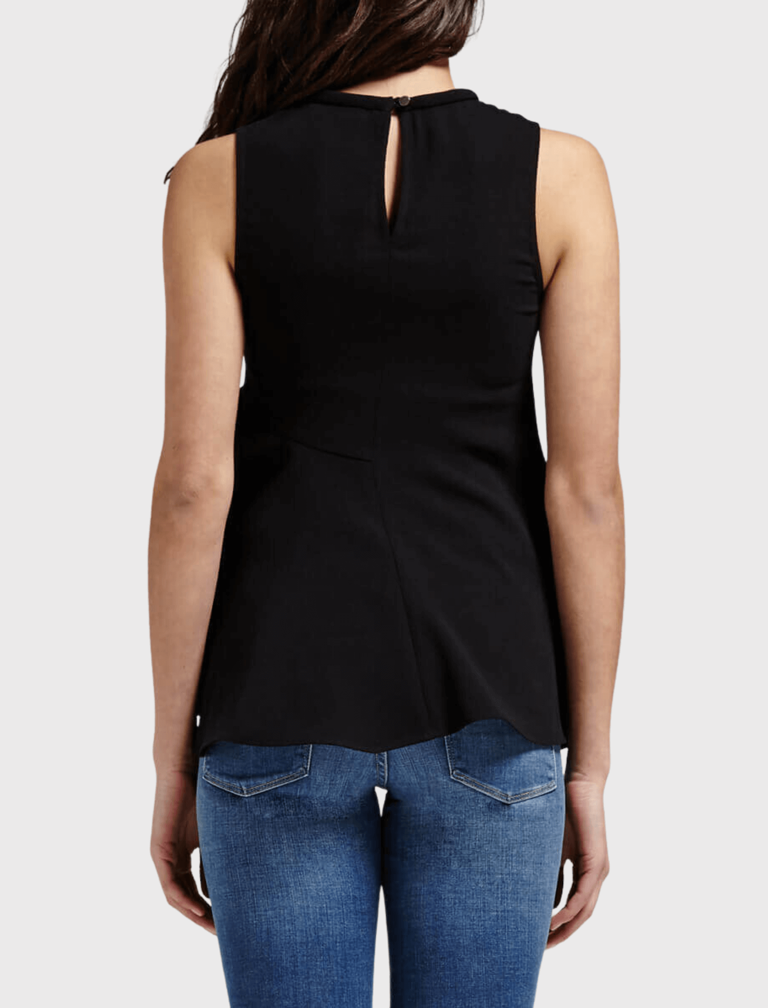 The Nicholas Crepe Flare Hem Tank in Black is true to size