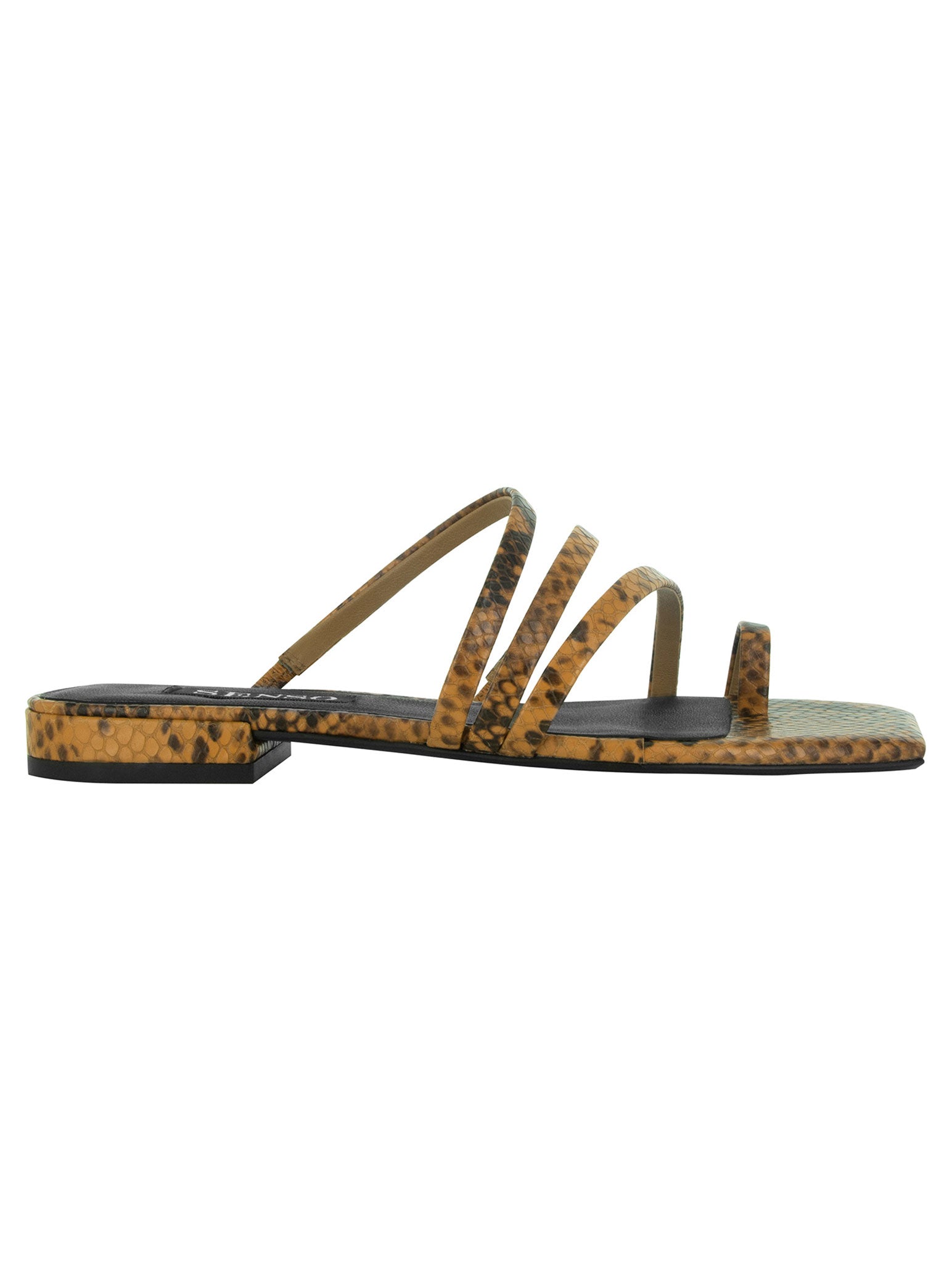 Slip into summer with the Senso Ulissa II Slide in Tumeric. Constructed from a golden toned snake skin printed leather, these elevated slides feature three straps across the vamp with elasticated detailing for comfort, a singular toe strap, a subtle 1cm block heel and are finished with a square toe for a modern touch.