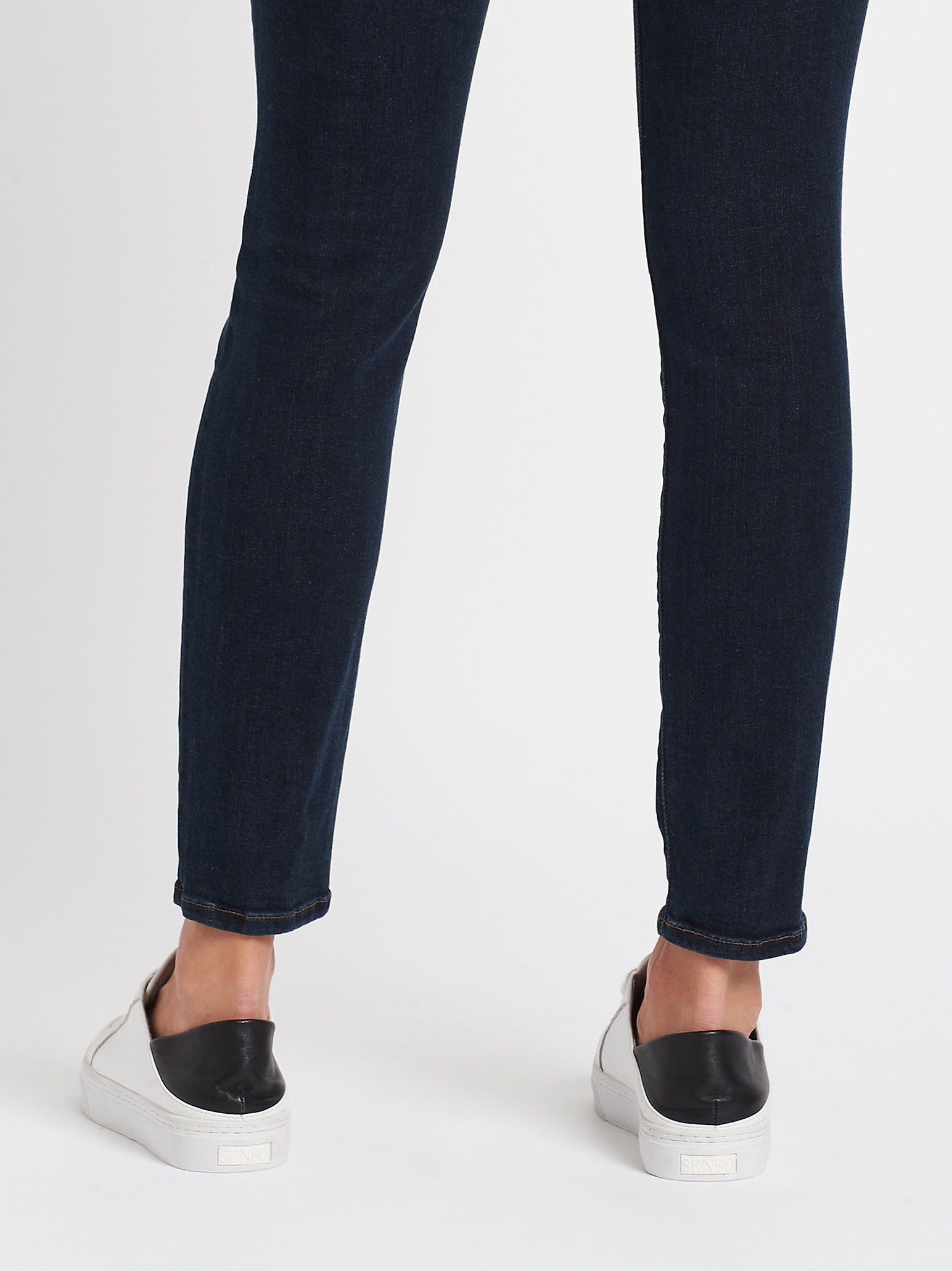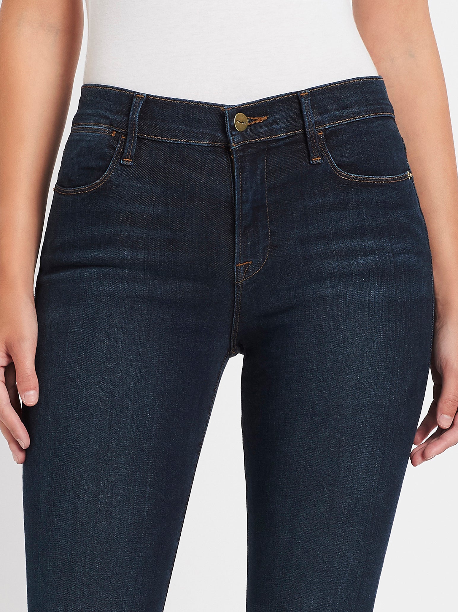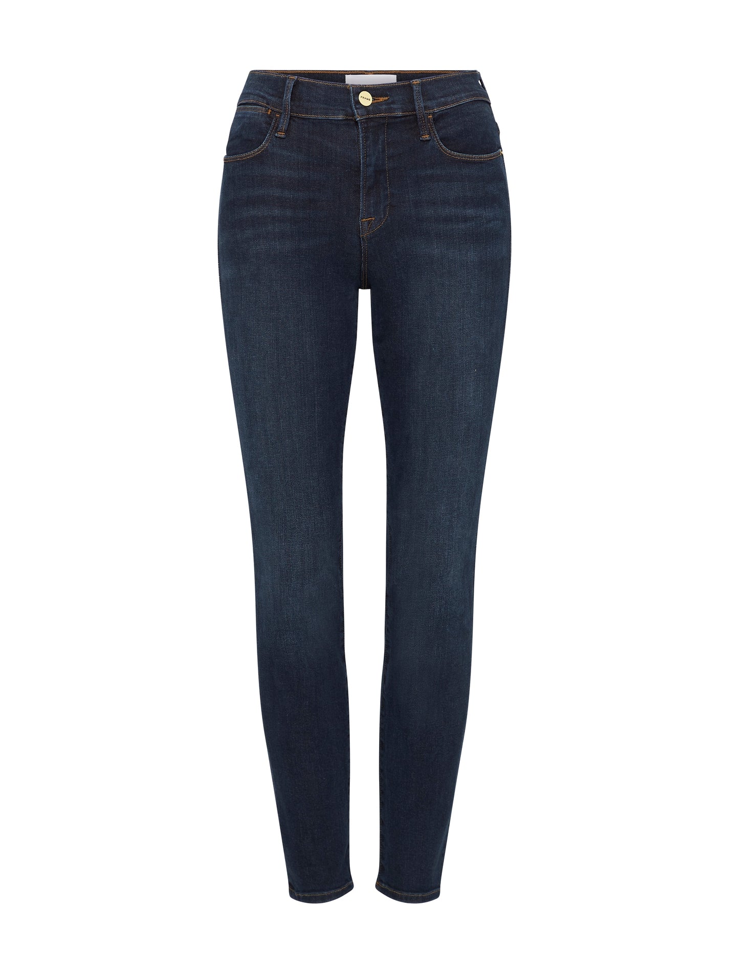 Find the ultimate Contemporary Skinny Silhouette with the Le High Skinny Jean in Harvard by Frame Denim. These 70s inspired high rise jeans feature Frames signature Premium Denim in a Dark Blue Wash with Super Stretch and Strong Recovery. Pair back with a feminine and flats for an easy work to weekend style.