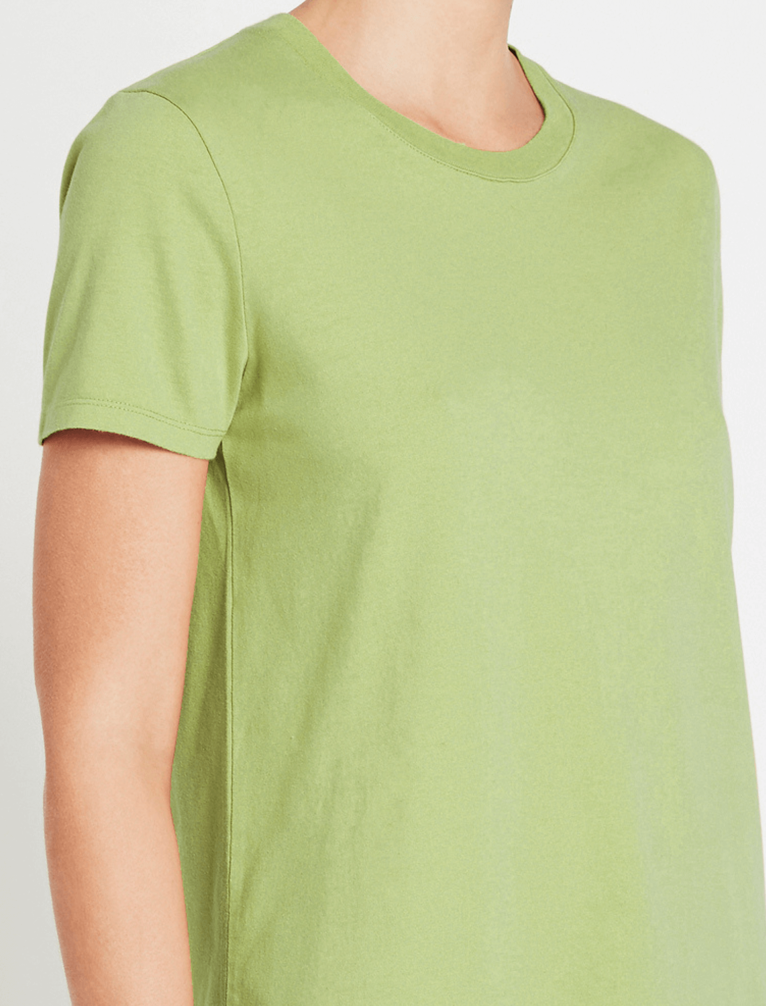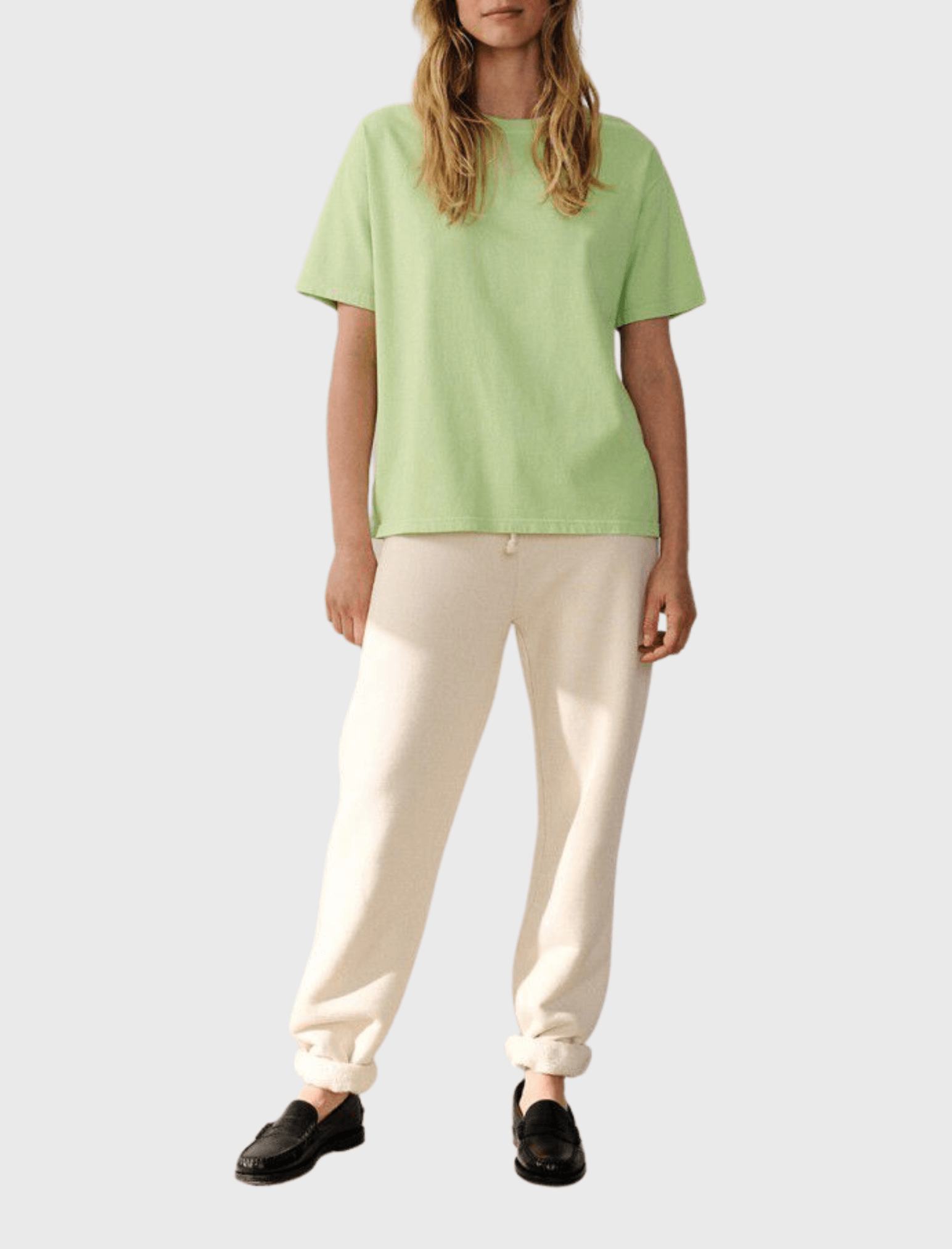 A beautiful burst of fresh mint green is just what we need this spirng. The American Vintage Fizvalley Tee in Almond Tree Green is a boxy style tee borrowed straight from your boyfiends wardrobe. Made from a c.assic cotton t-shirt jersey this slightly heavier weight top features a rounded crew neckline, short sleeves and a classic twin needle finish on the hem. Team with classic blue denim and white sneakers for easy weekend style.