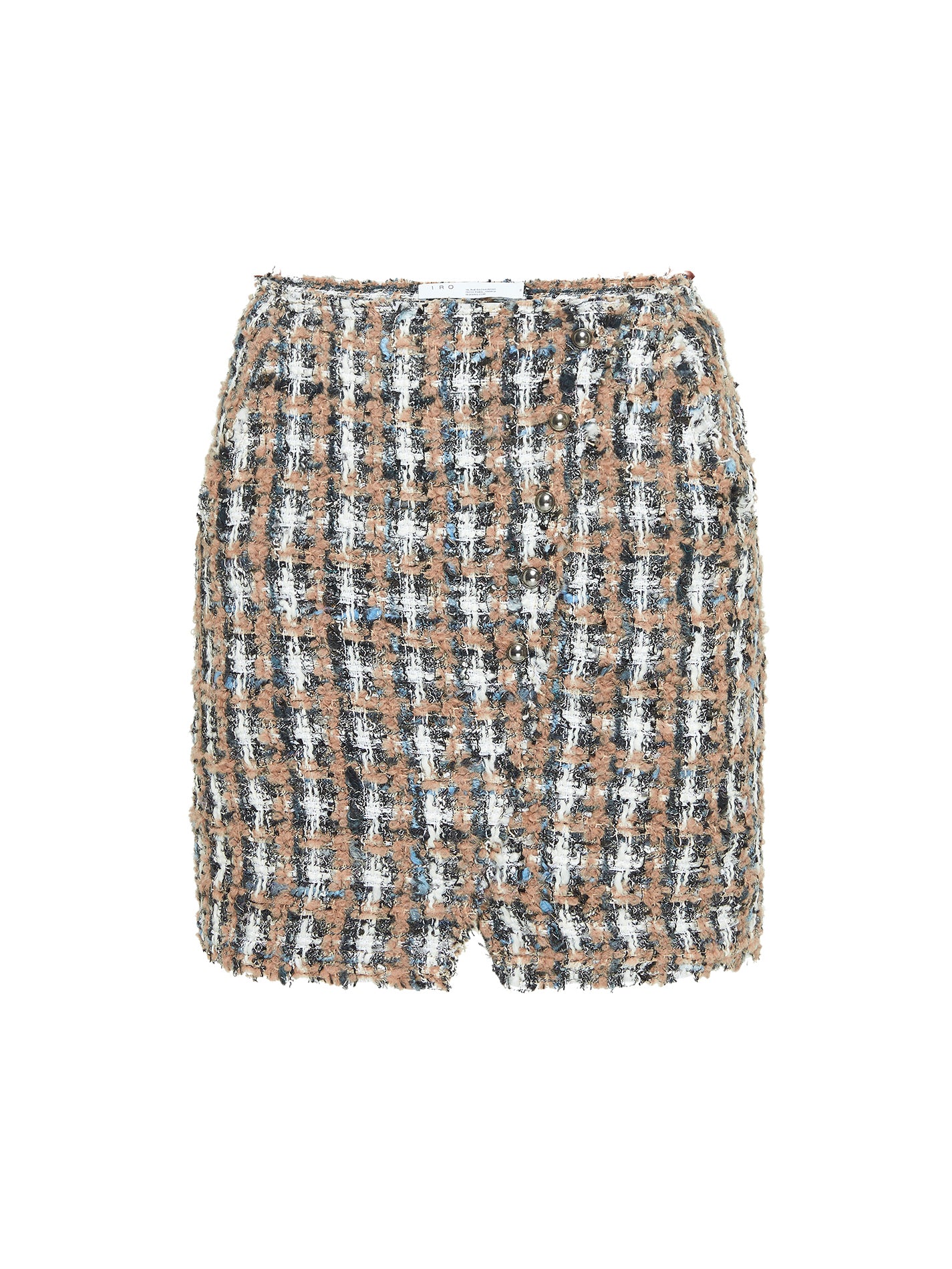 The IRO Hunch Skirt in Beige Multi is made from 51% Cotton, 49% Viscose, 33% Acrylic, 20% Wool, 16% Polyester, 16% Cotton, 9% Polyamide, 6% Viscose