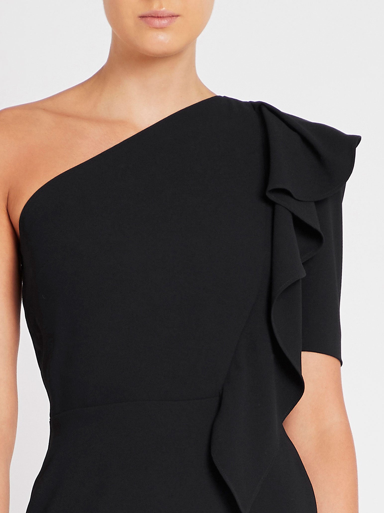 IRO has taken the timeless little black dress and transformed it into a modern masterpiece with their latest offering, the Mosby Dress in Black. Made with high-quality polyester, this off-the-shoulder mini dress style boasts a lifted shoulder frill detail, adding an unexpected twist to the classic LBD.