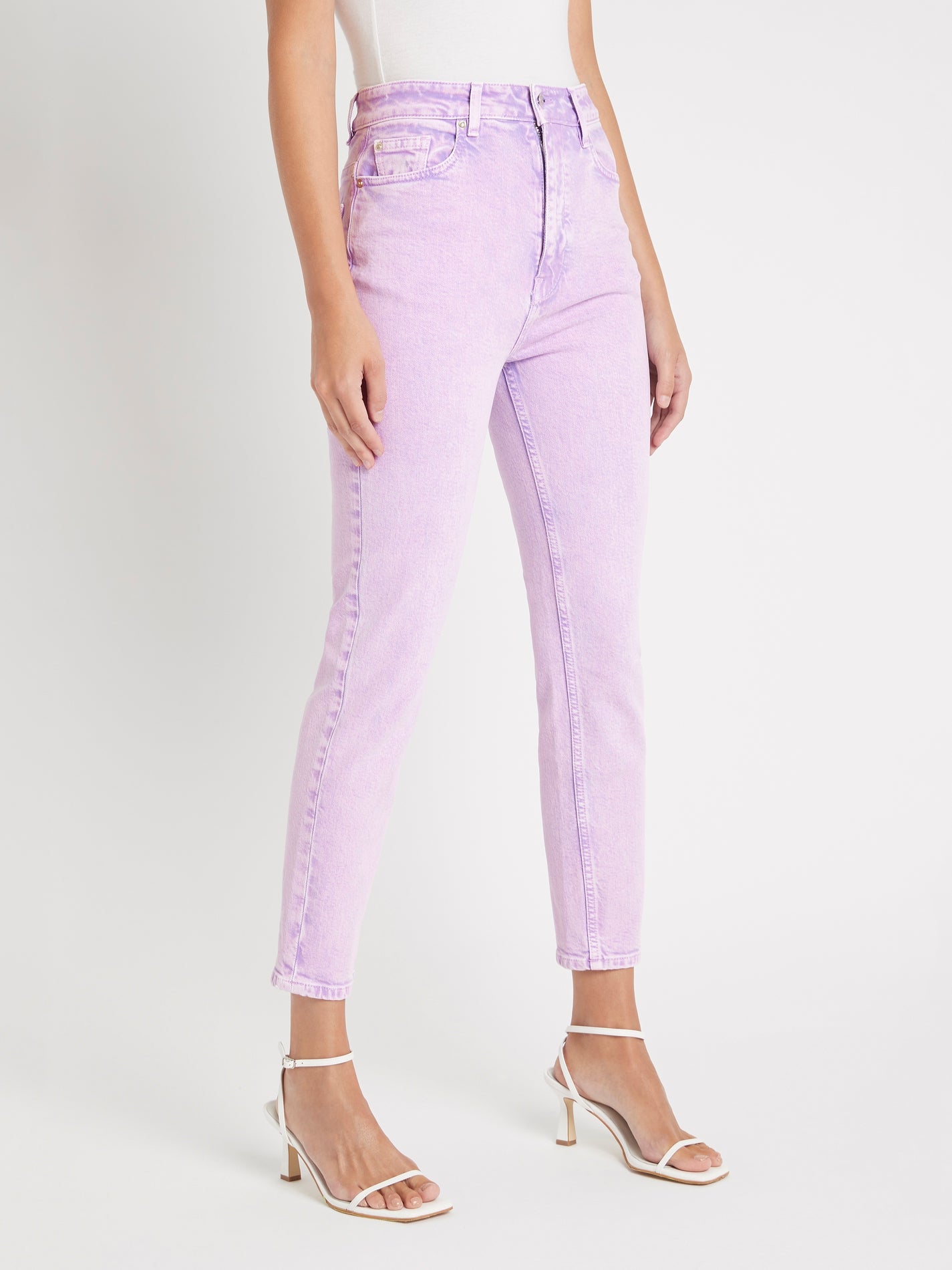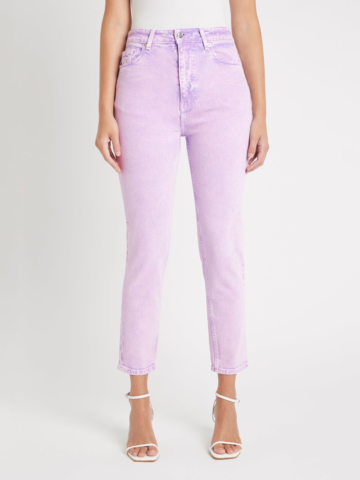 Add a pop of pastel to your wardrobe with the IRO Eli Jean in Lilas. Constructed from a crisp cotton with a touch of elastane these straight leg jeans feature a single button zip fly closure, front and back pockets and a relaxed high waist. Team with a classic white tee and strappy shoes for easy weekend style.