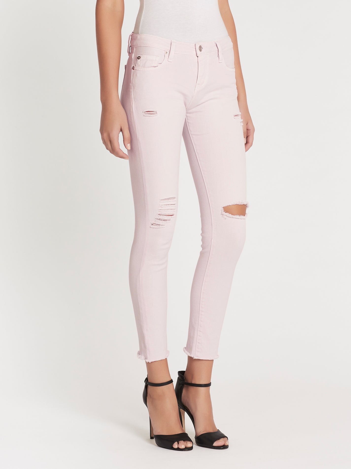Update your off-duty style with the IRO Jarod Jean in Pink. Constructed from a cotton and elastane blend these low rise skinny jeans feature a single button zip fly opening, side and back pockets, distressed details and are finished with a raw cut hem.