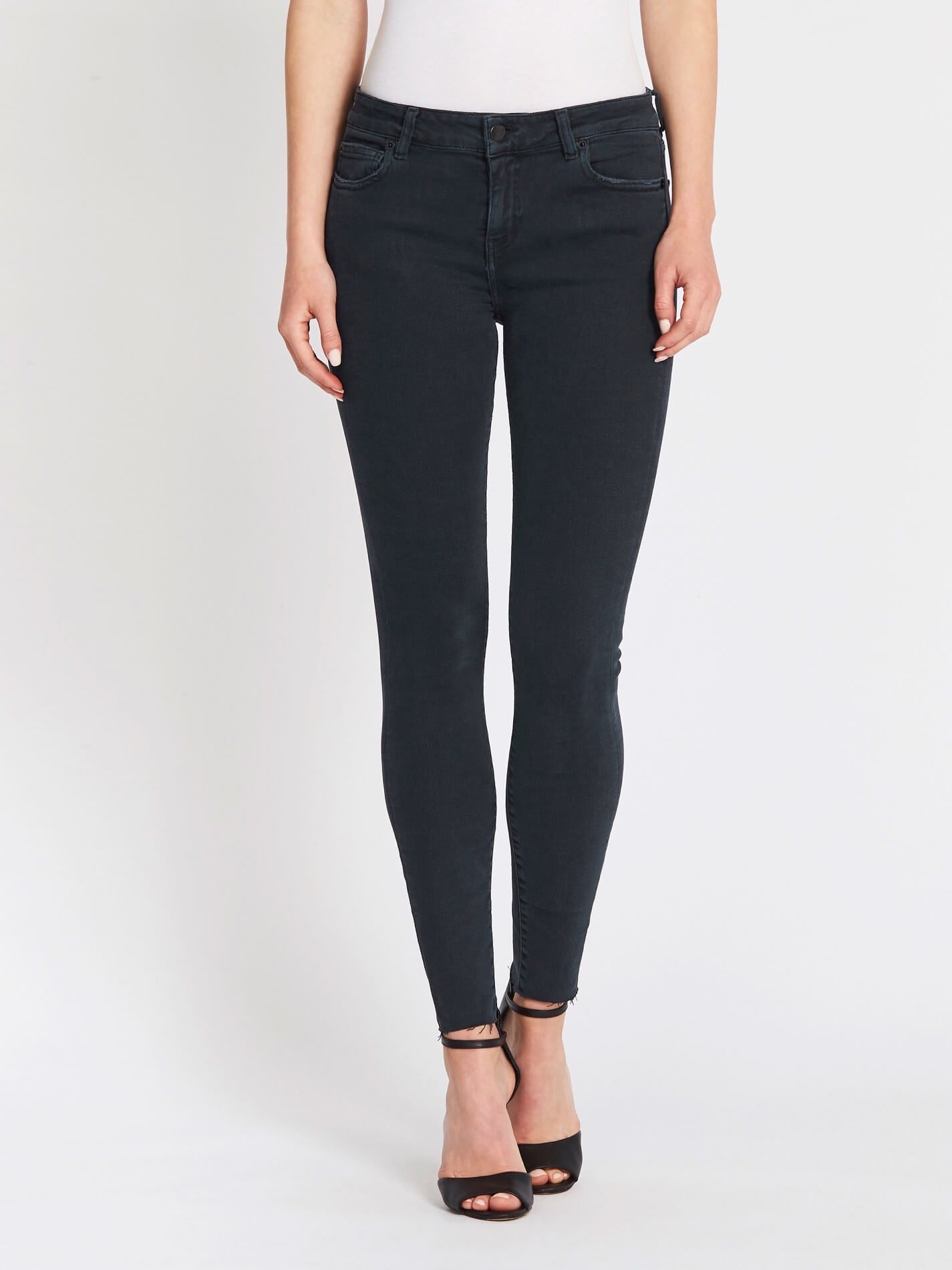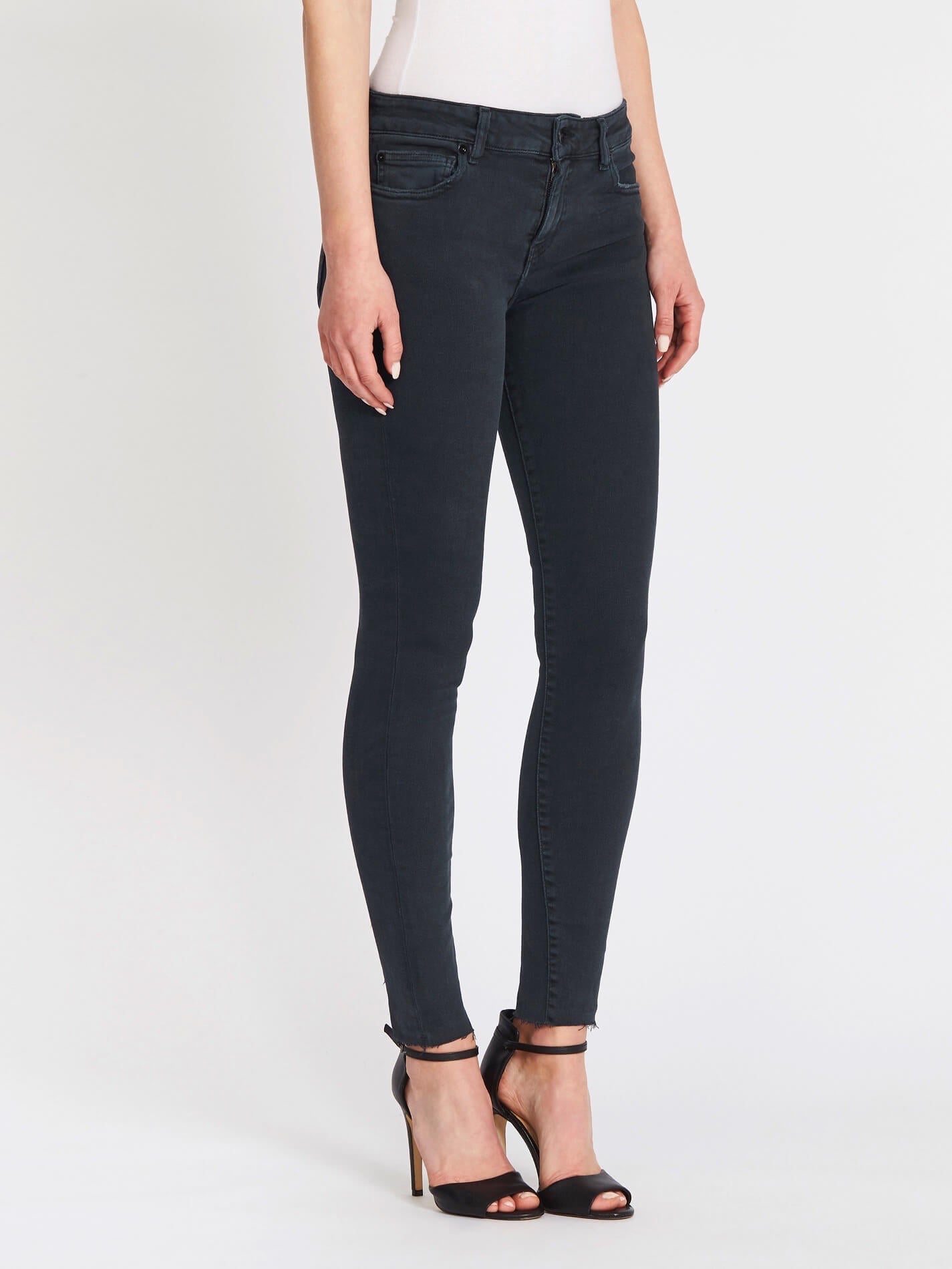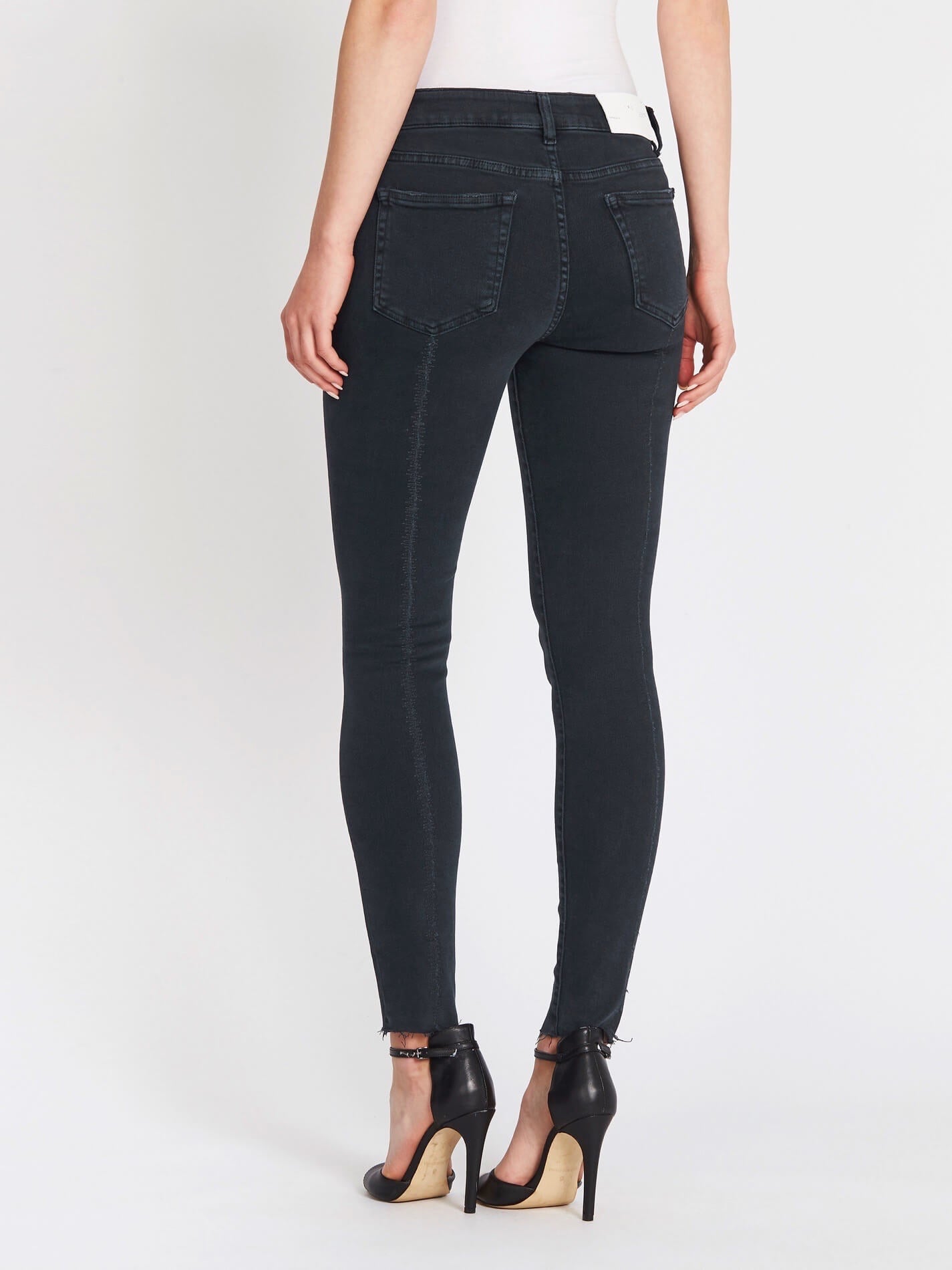 The IRO skinny Surfer Jean in Black Denim is a sleek, clean style. Featuring minimal fading and distressed detailing, these jeans have back stitching detail and shiny black hardware.