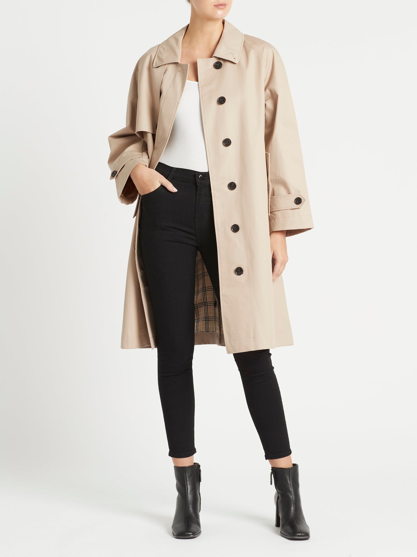 The Frame Denim Mac Coat in Khaki Multi is made from 100% Cotton