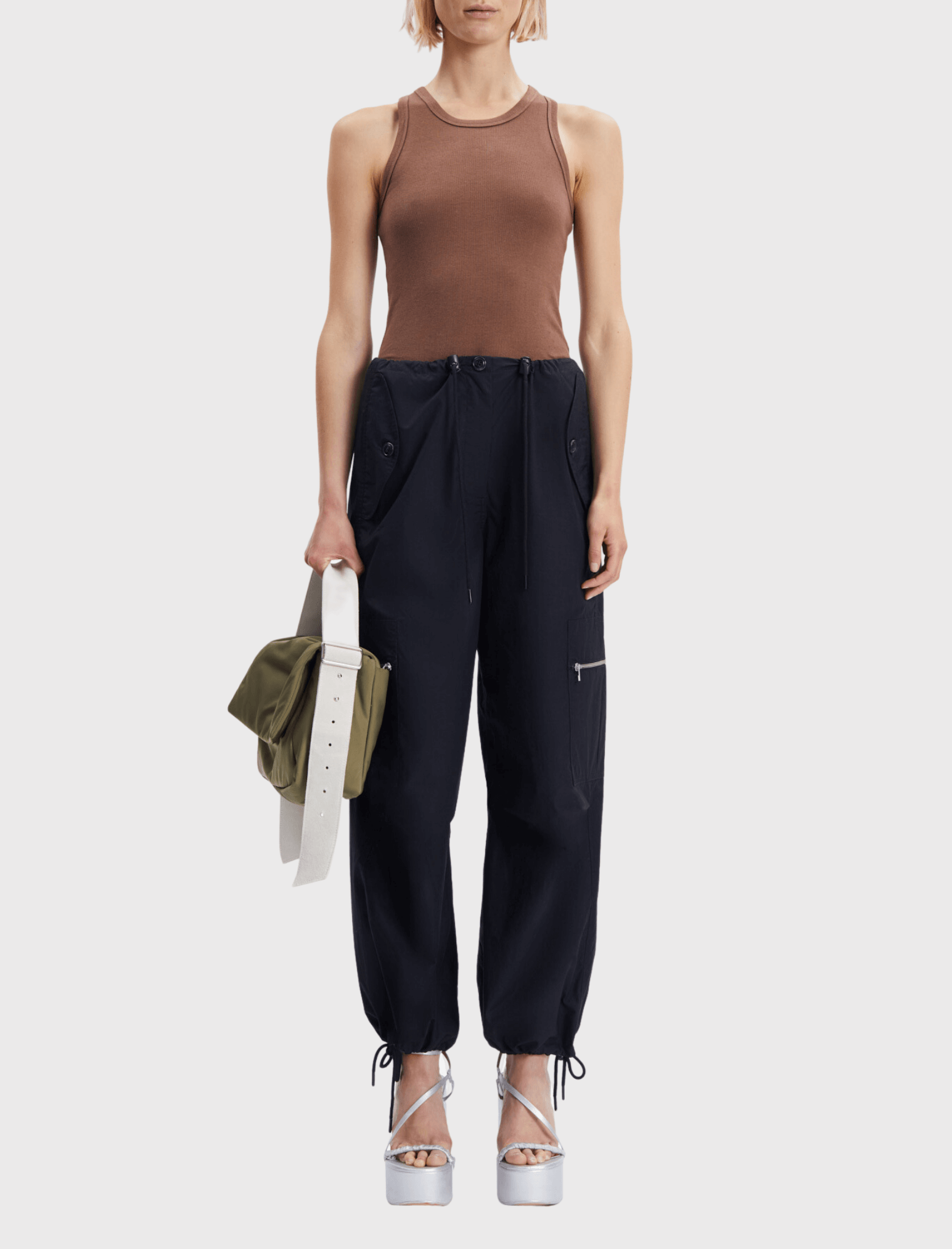 The Samsoe Samsoe Chi Cargo Pant Trousers in Caviar is made from 50% Organic Cotton & 50% Cotton, Lining 100% Cotton