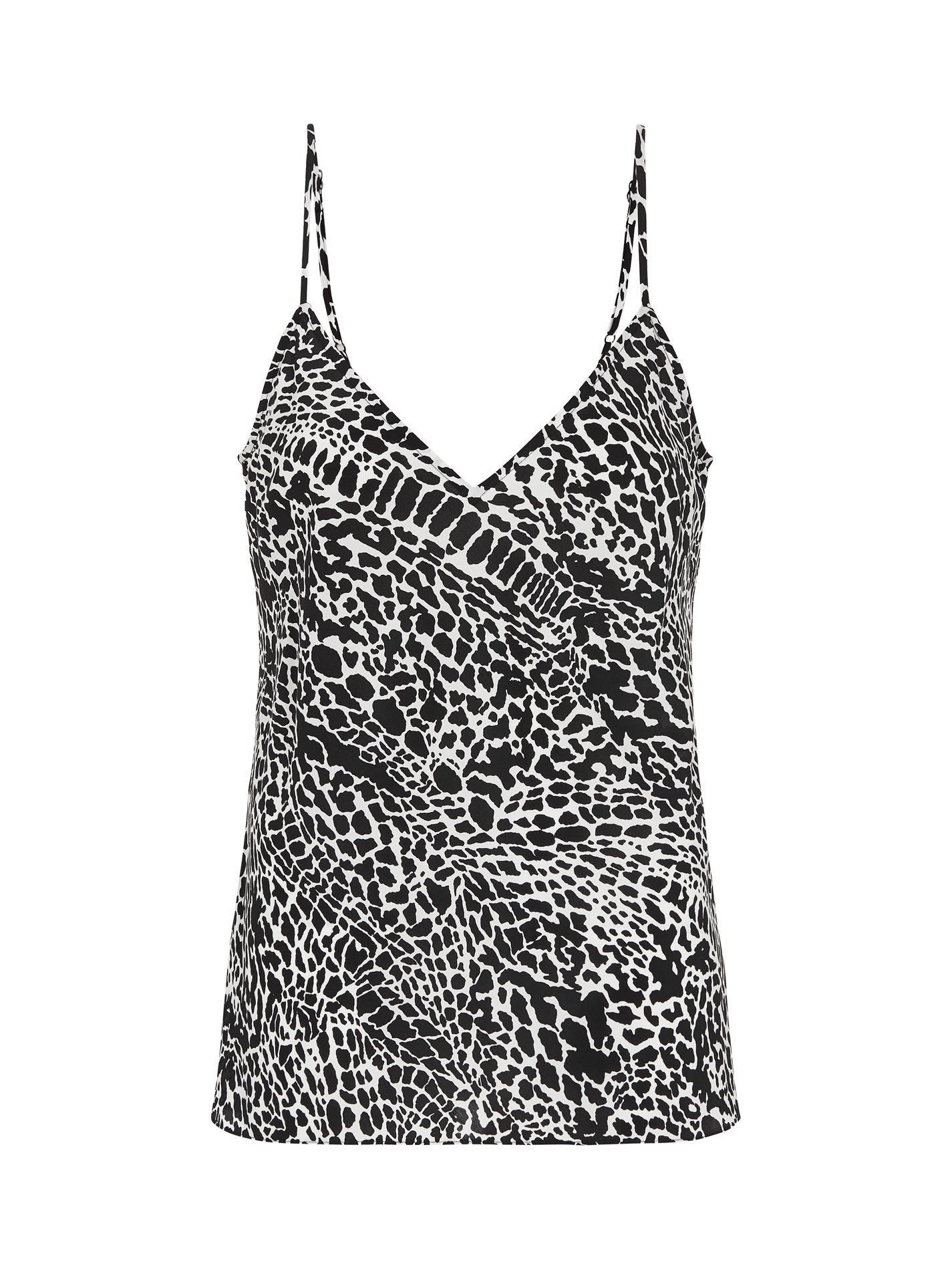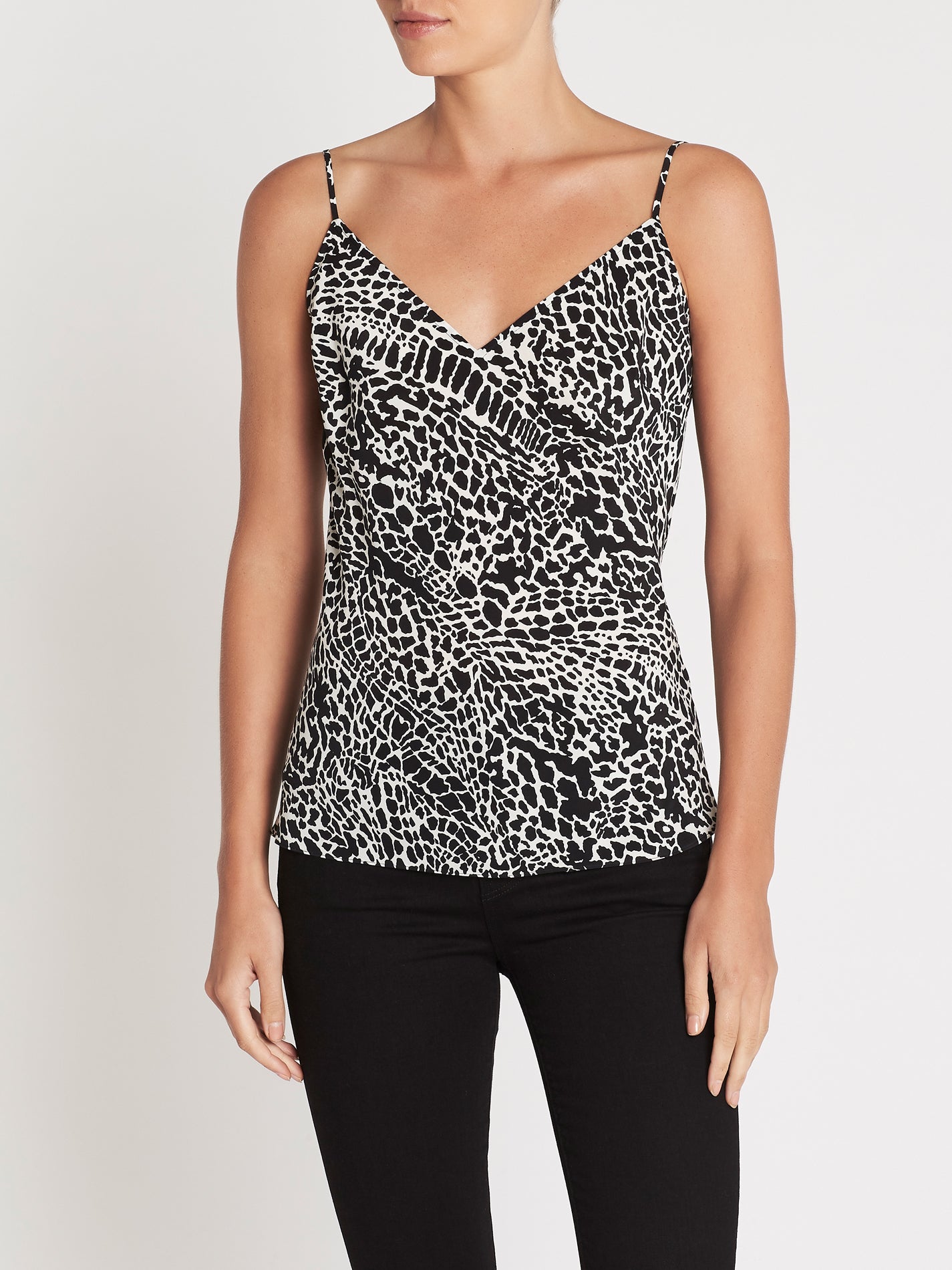 The Frame Classic Cami in Noir Multi animal inspired print is a classic v neck camisole with an edge. Constructed from ultra soft silk this cami features a v neck at the front and back and adjustable spaghetti straps. Wear yours tucked into a black leather skirt with your favourite heels for ultimate night out style.