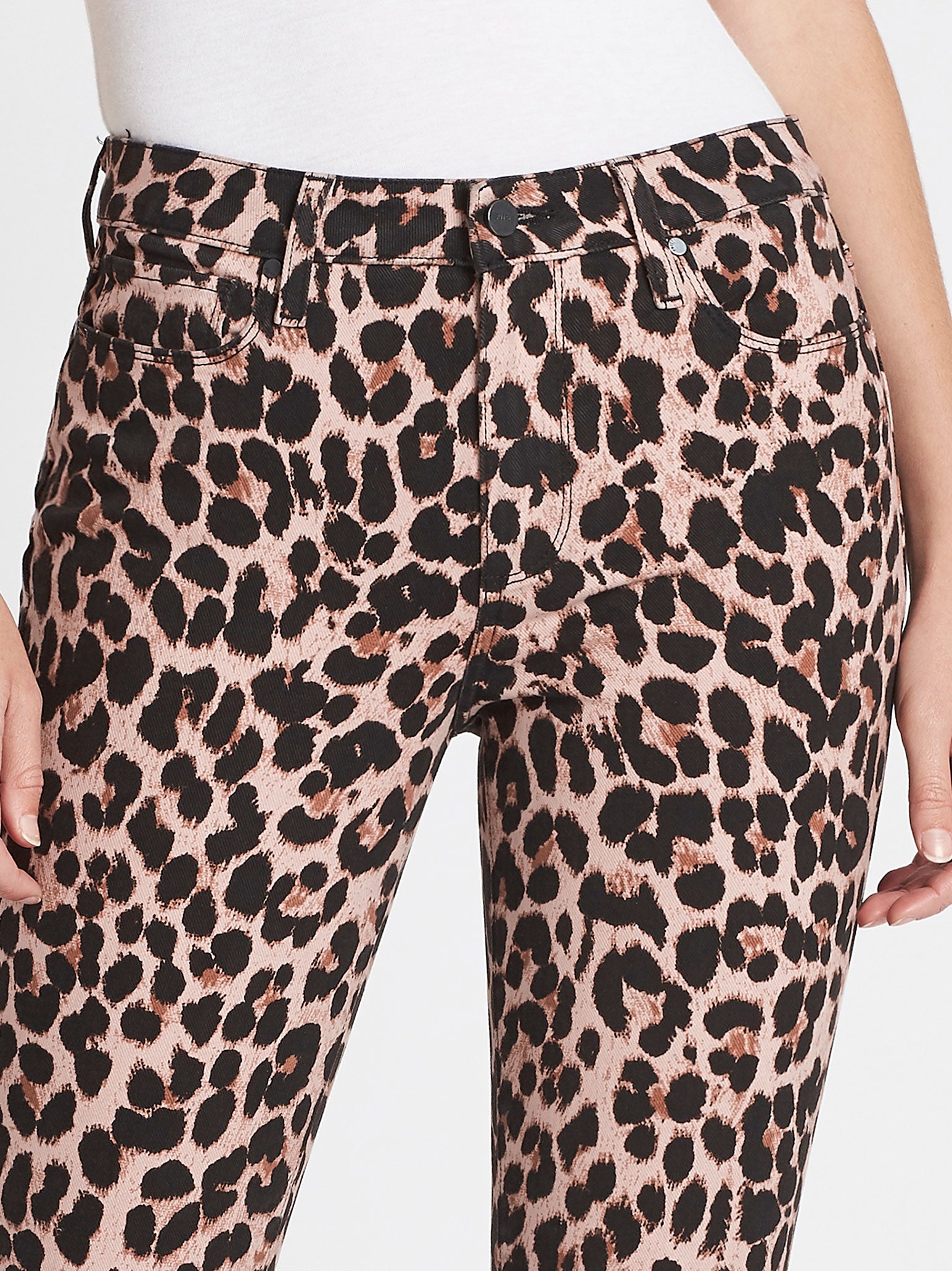 The Hoxton Ankle Raw Hem Jean in Pink Leopard by Paige is made from 98% Cotton 2% Elastane