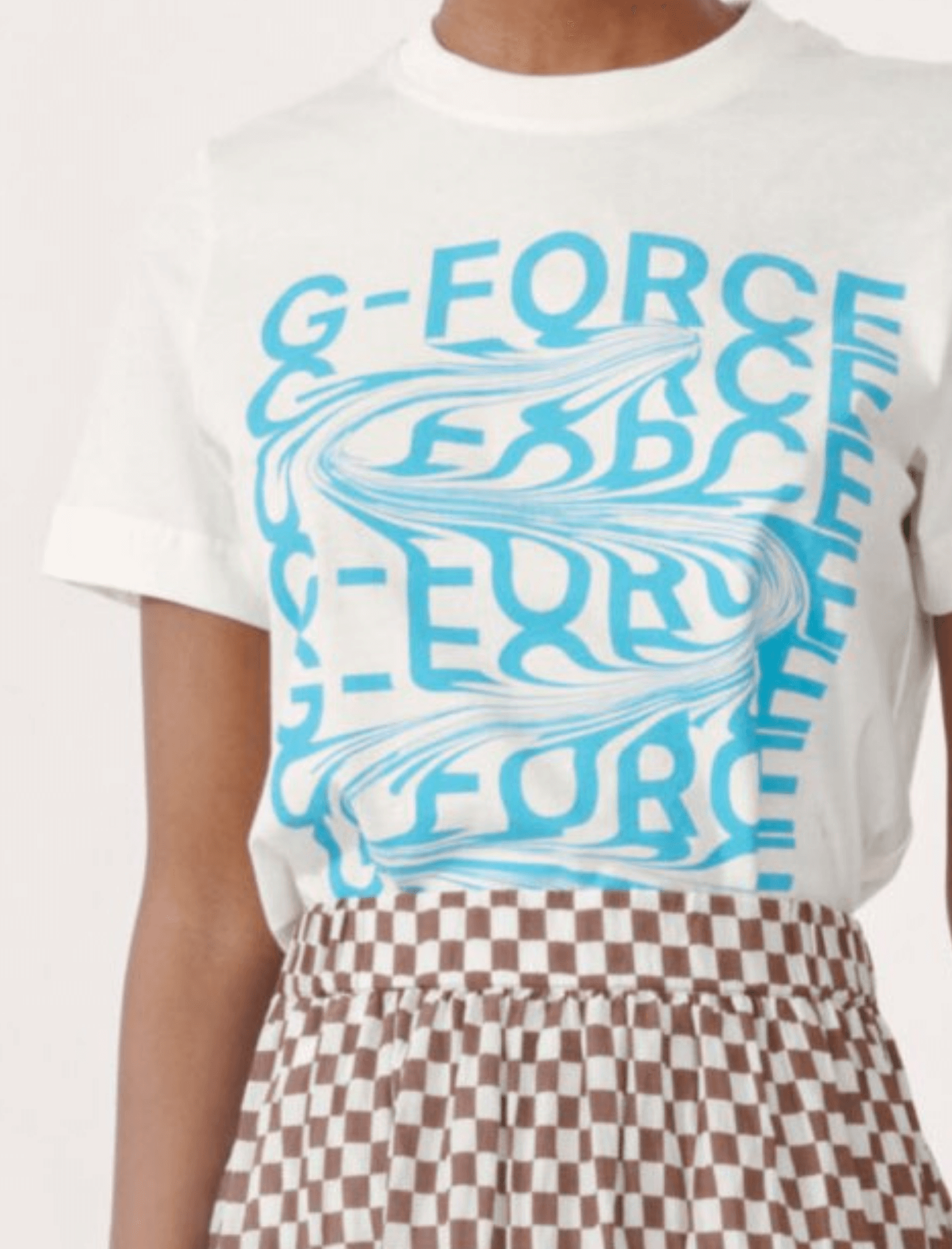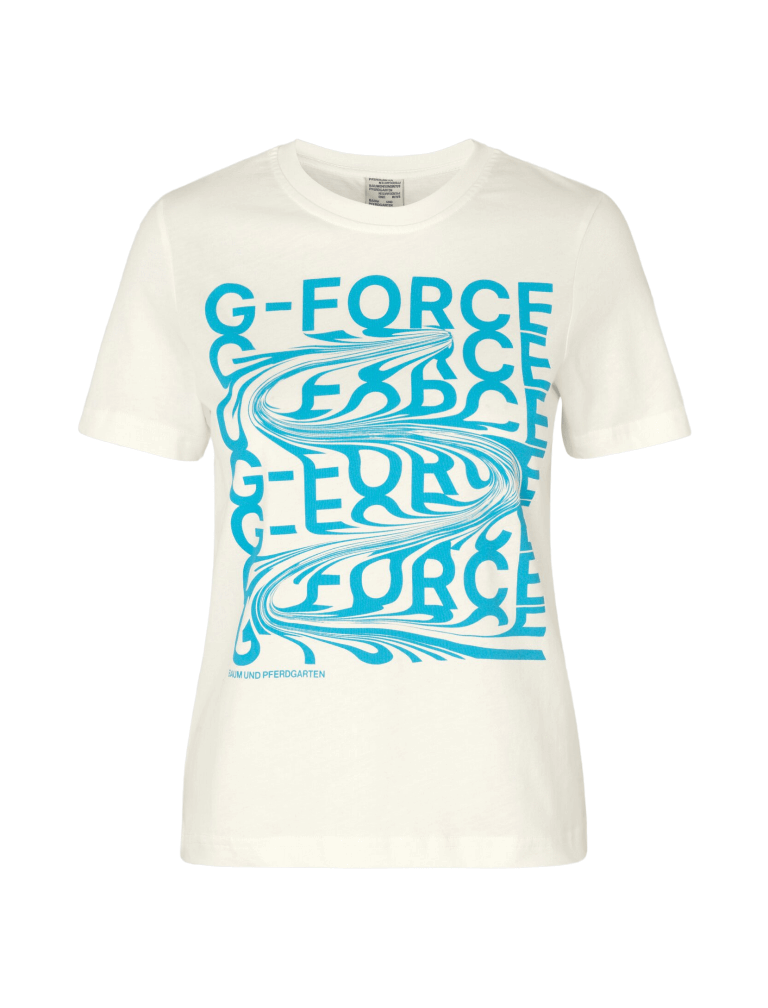 A classic white tee with a groovy logo print the Baum Und Pferdgarten Jalona Tee in White/Turquoise takes inspiration from motor racing with its oil slick inspired graphics. A regular crew fit tee, it is made from classic t-shirt jersey in organic cotton and has a slight stretch. Rev those engines and pair this with a denim skirt and some combat boots taking your style to the next level.