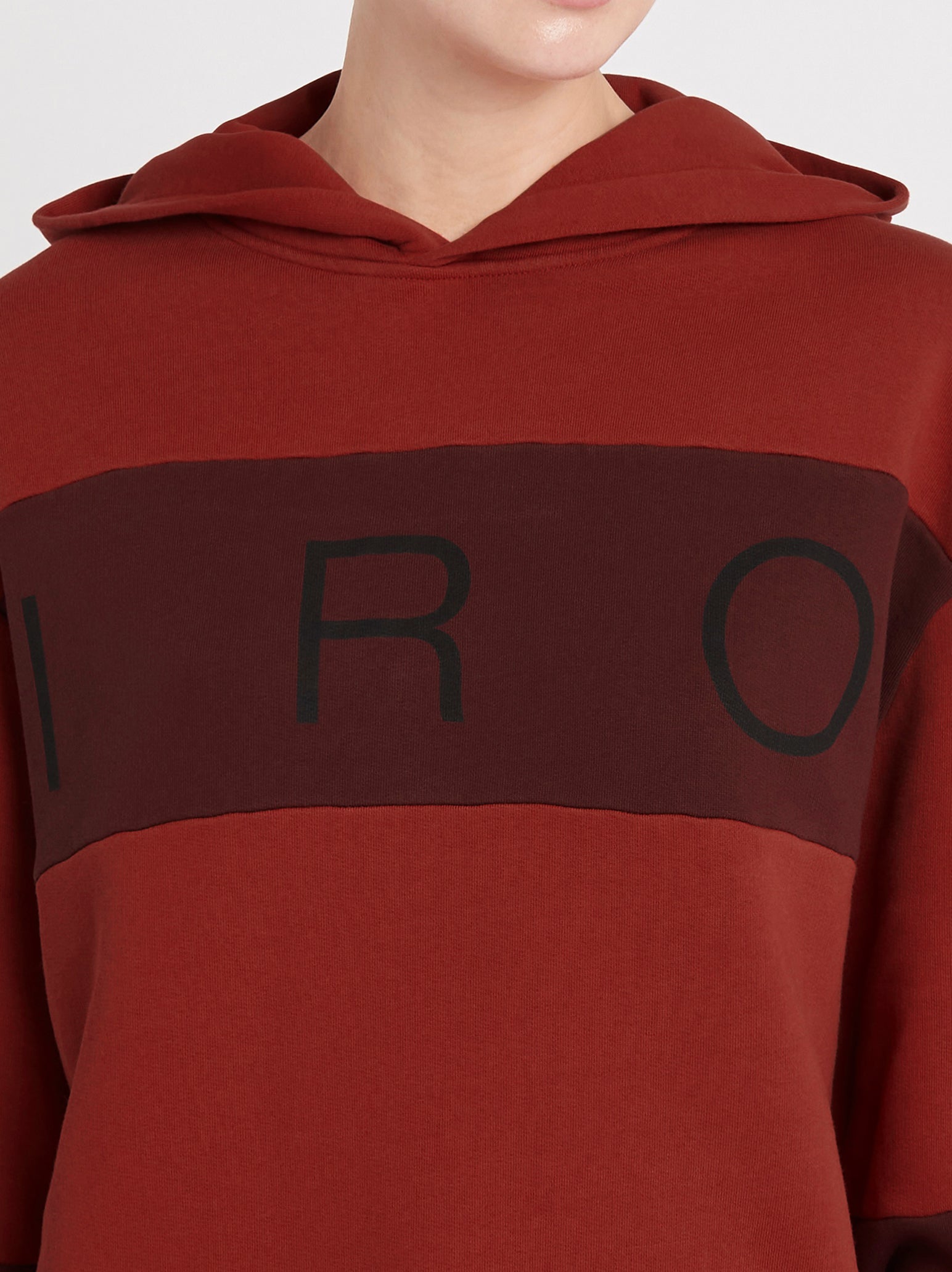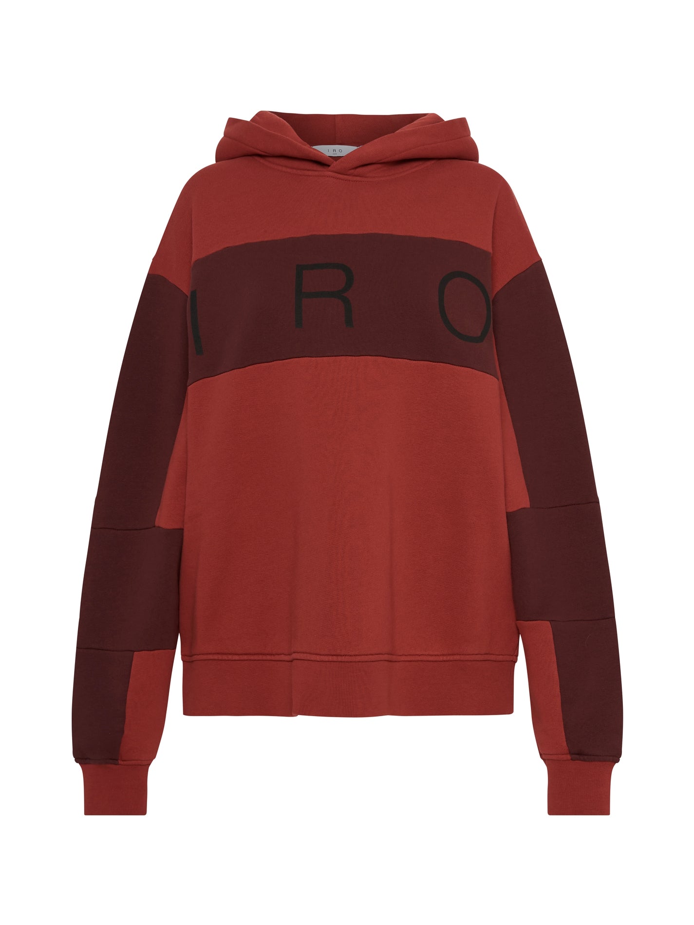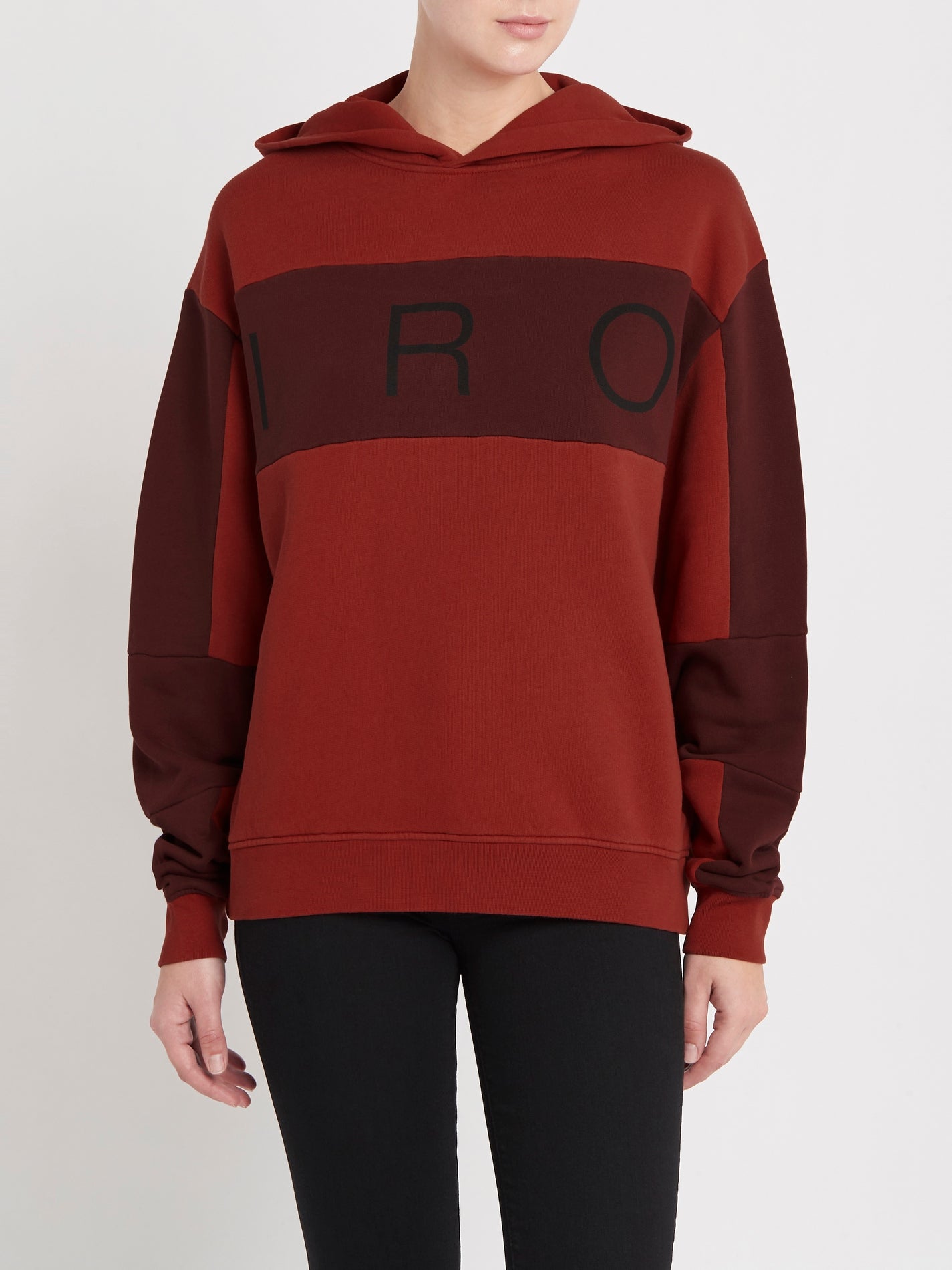 Update your leisurewear with the IRO Coco Sweatshirt in Multico Ruby. This heavyweight cotton sweatshirt will keep the cold at bay. Featuring a high crew neck and colour blocked sleeves with IRO logo print.