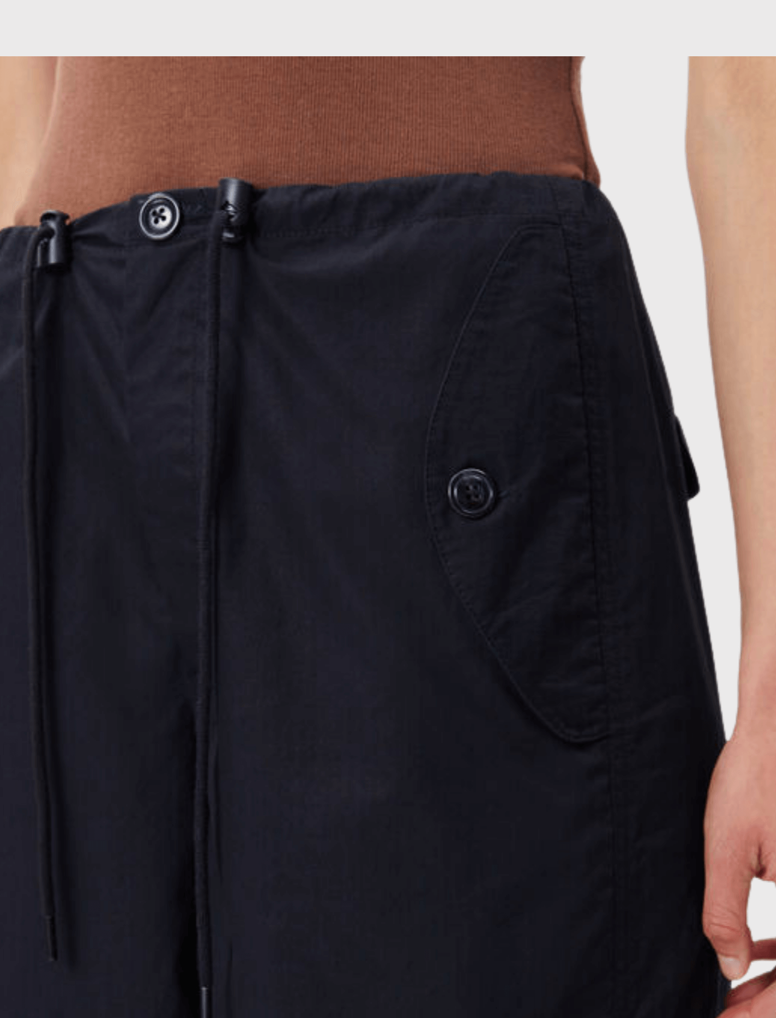 The Samsoe Samsoe Chi Cargo Mini Skirt in Caviar is made from 50% Organic Cotton & 50% Cotton, Lining 100% Cotton
