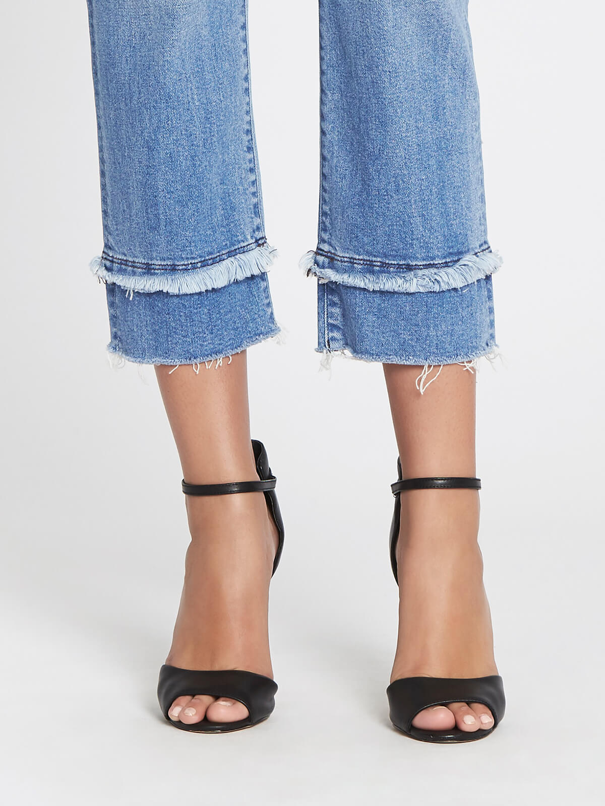 You’ll feel pretty as a picture in the 3X1 W3 Petal Higher Ground Slim Crop Jean in Holden, the straight cropped leg is made from a low stretch denim and features a double tiered hem with fray distressing.