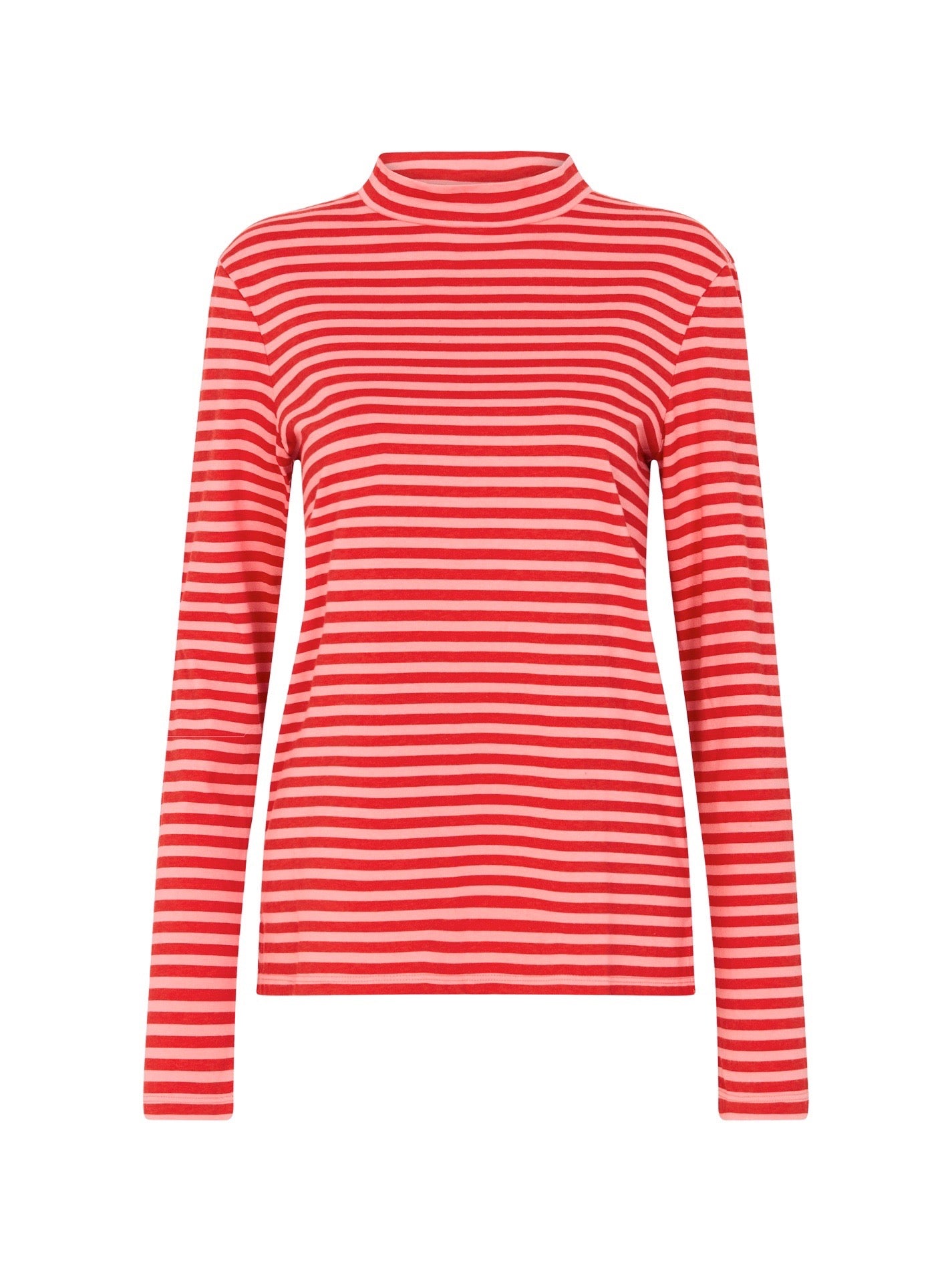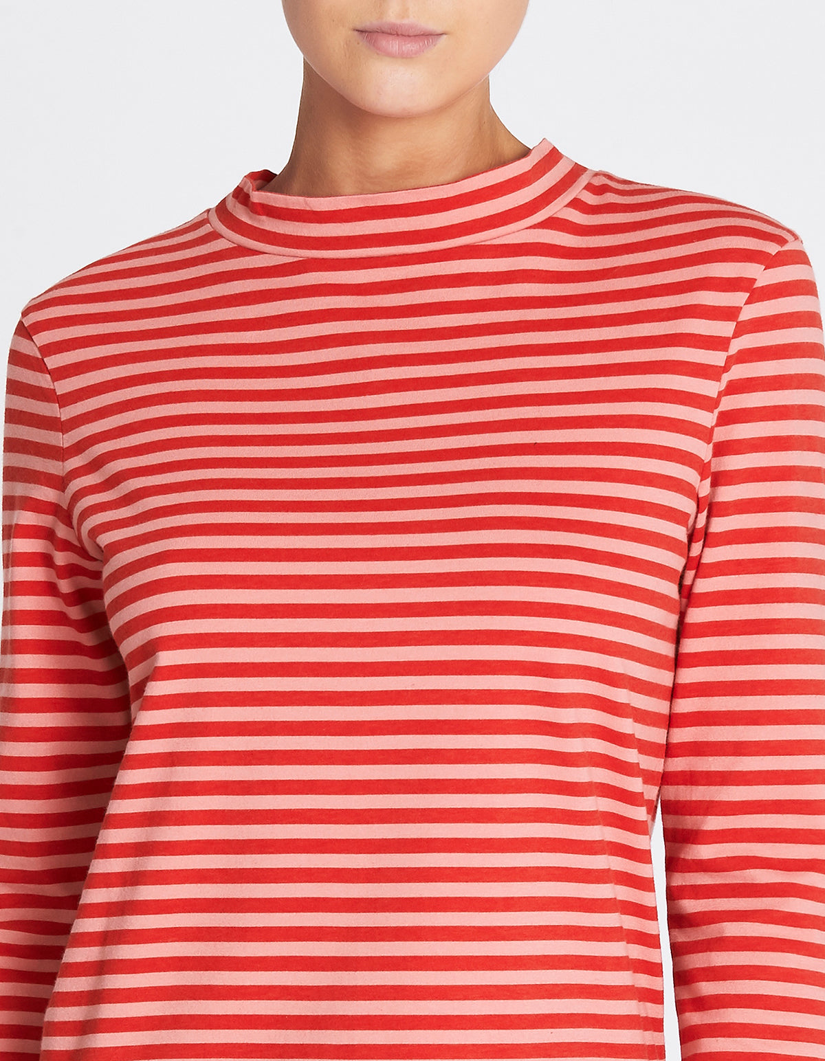 M.i.h Jeans re-works the classic striped top with the Emelie Top in Rosa Pink / Cherry Red. Constructed from 100% cotton this long sleeve piece features a seberg neck and is finished with a staggered side split hem.