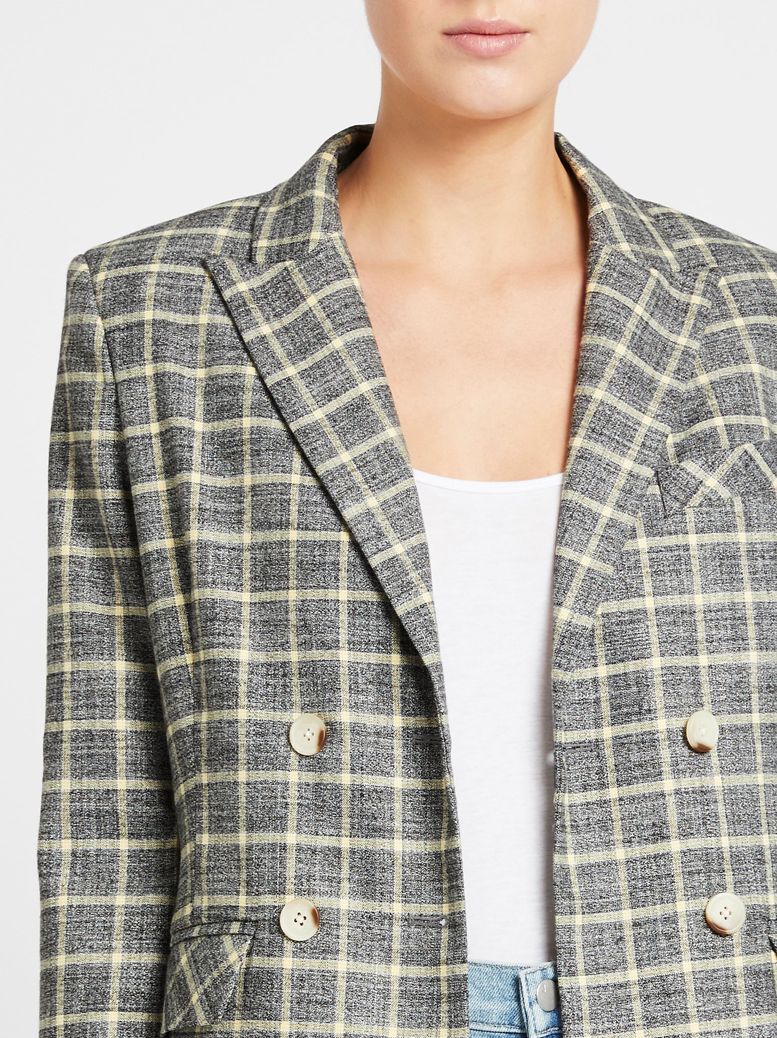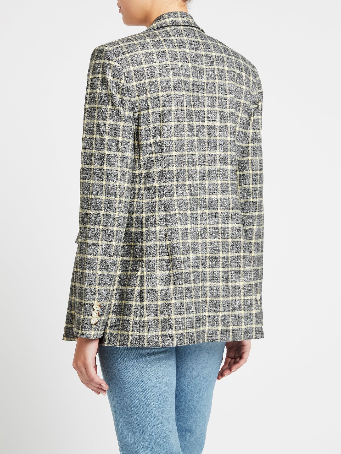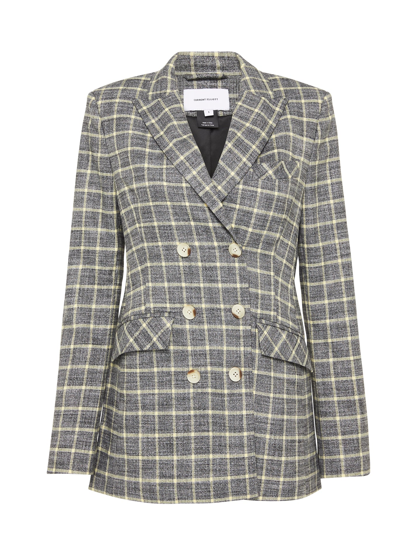 Check Please! Get on the check bandwagon with the Current Elliott Demi Blazer in Black Sulphur. Constructed from a polyester blend this longline blazer features classic lapels, soft shoulder pads, twin set centre front button opening and is finished with side flap pockets. This piece is inspired by vintage 70s menswear and is designed to have an oversized fit.