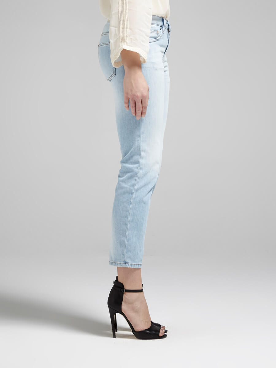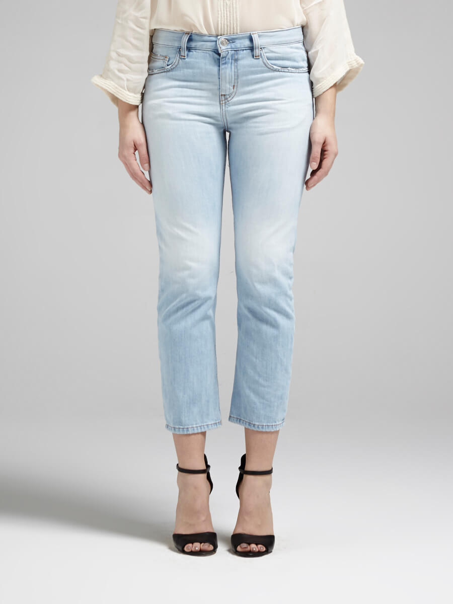 A killer crop boyfriend jean from IRO Jeans. The bleached out Nalyn Jean in BLEACHED USED have a low slung waist, 10 inch rise and twin pocket detailing at the back. The thigh wrinkle detail and cropped leg and are accented by silver hardware.
