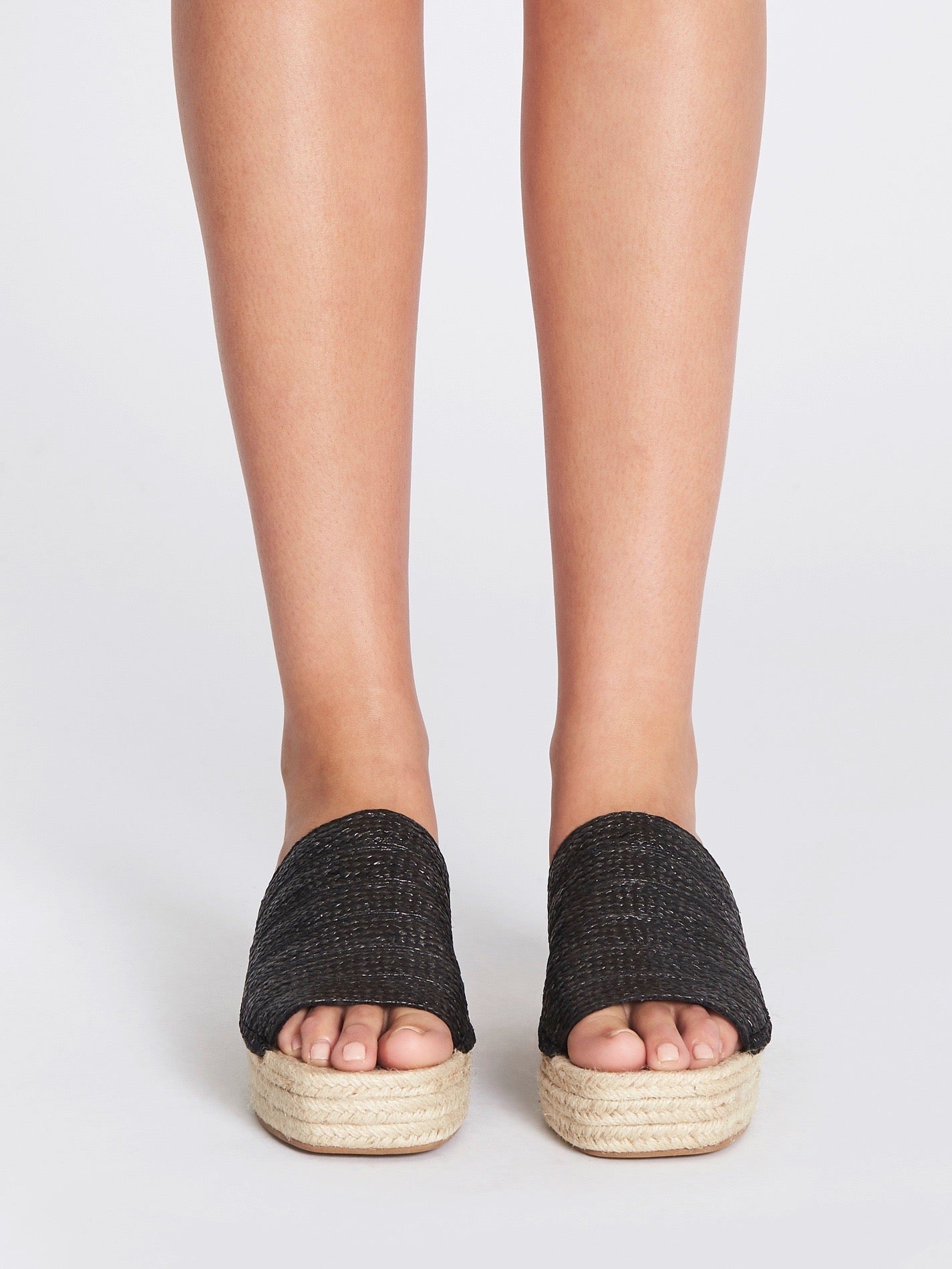 With summer around the corner we are eyeing off the Sol Sana Bennett Espadrille in Black. These easy to wear slip ons Feature a black woven raffia upper with open toe and straw toned jute on the 5cm platform.