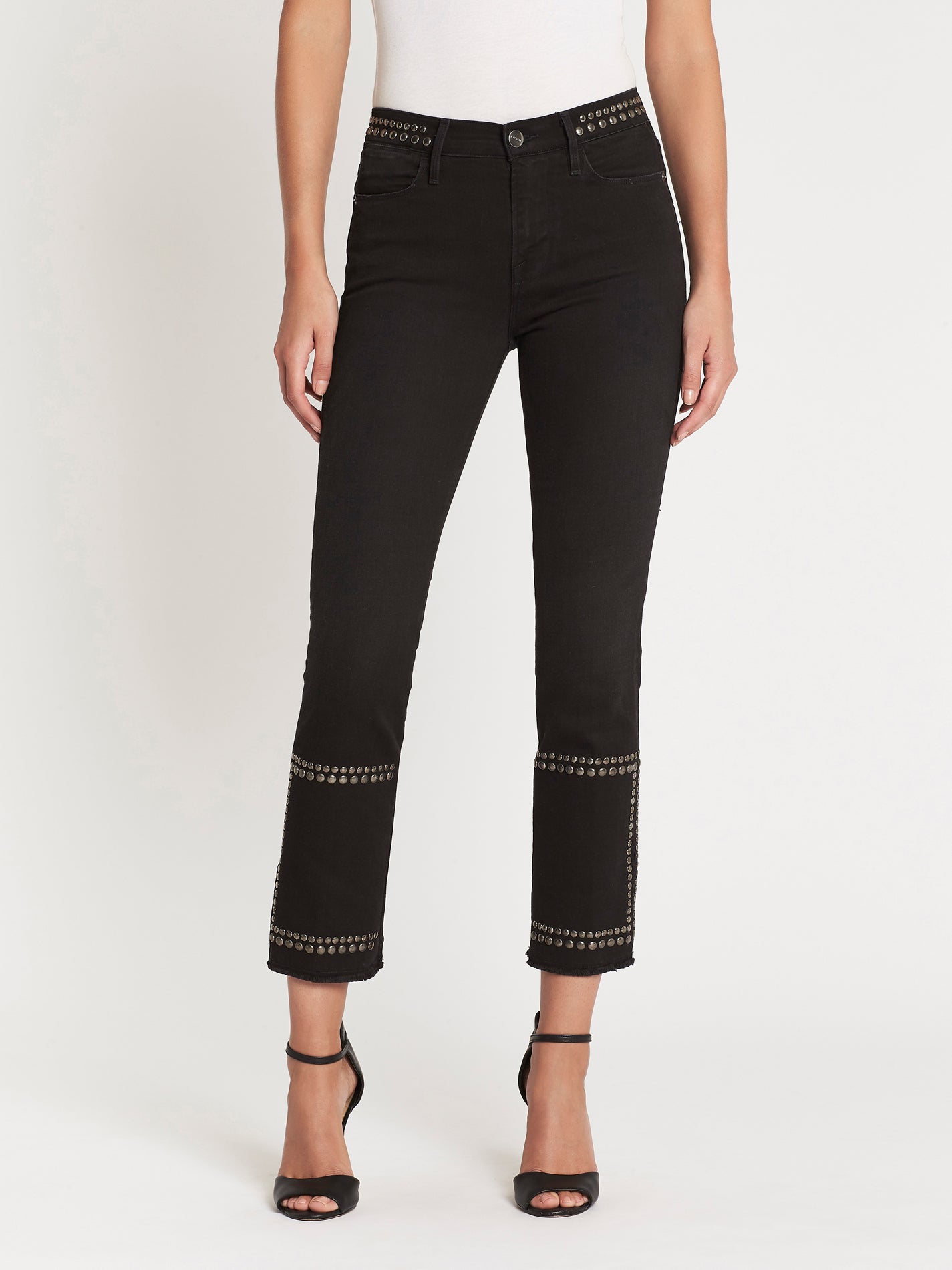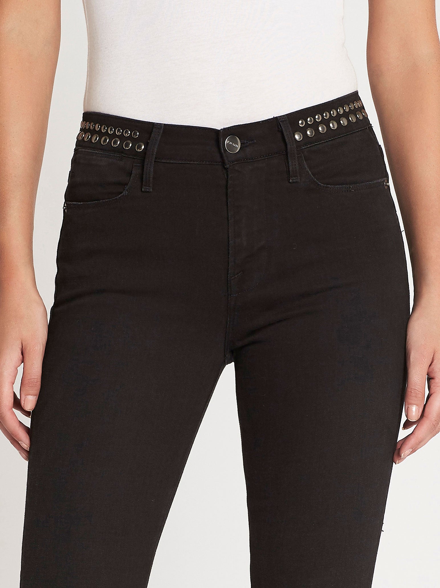 The Frame Denim Le High Straight Band Stud Jean in Troupe are made from