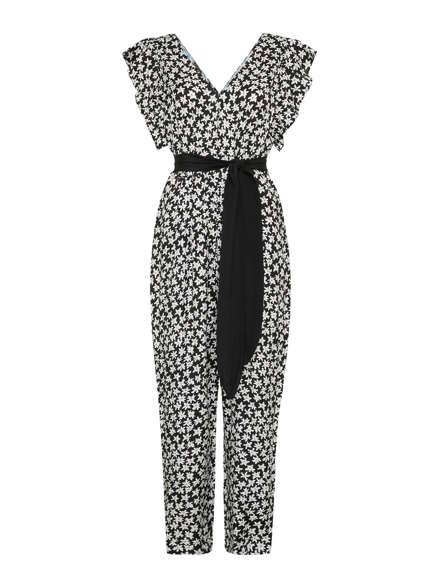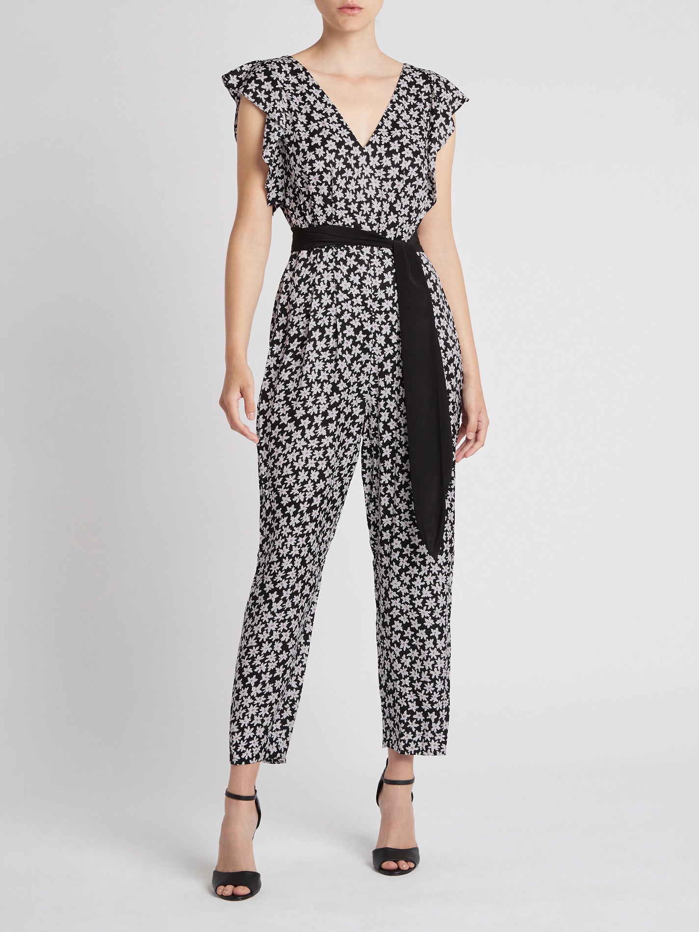 The Rebecca Taylor Star Fleur Jumpsuit in Black Combo is made from 52% Silk, 48% Viscose