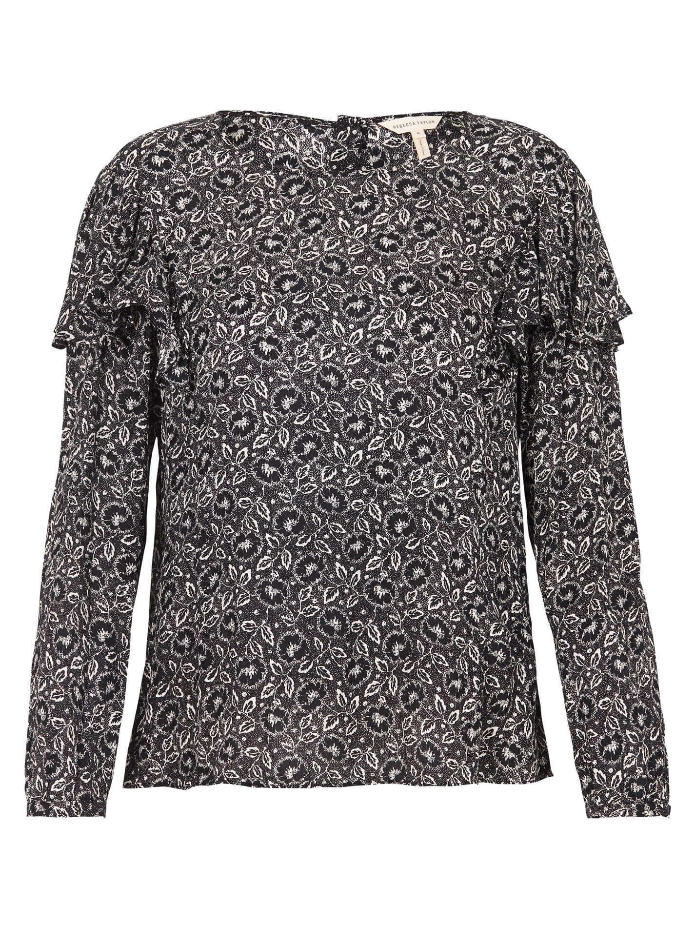 The Rebecca Taylor Long Sleeve Sweet Briar Top in Black Combo is made from 100% Silk