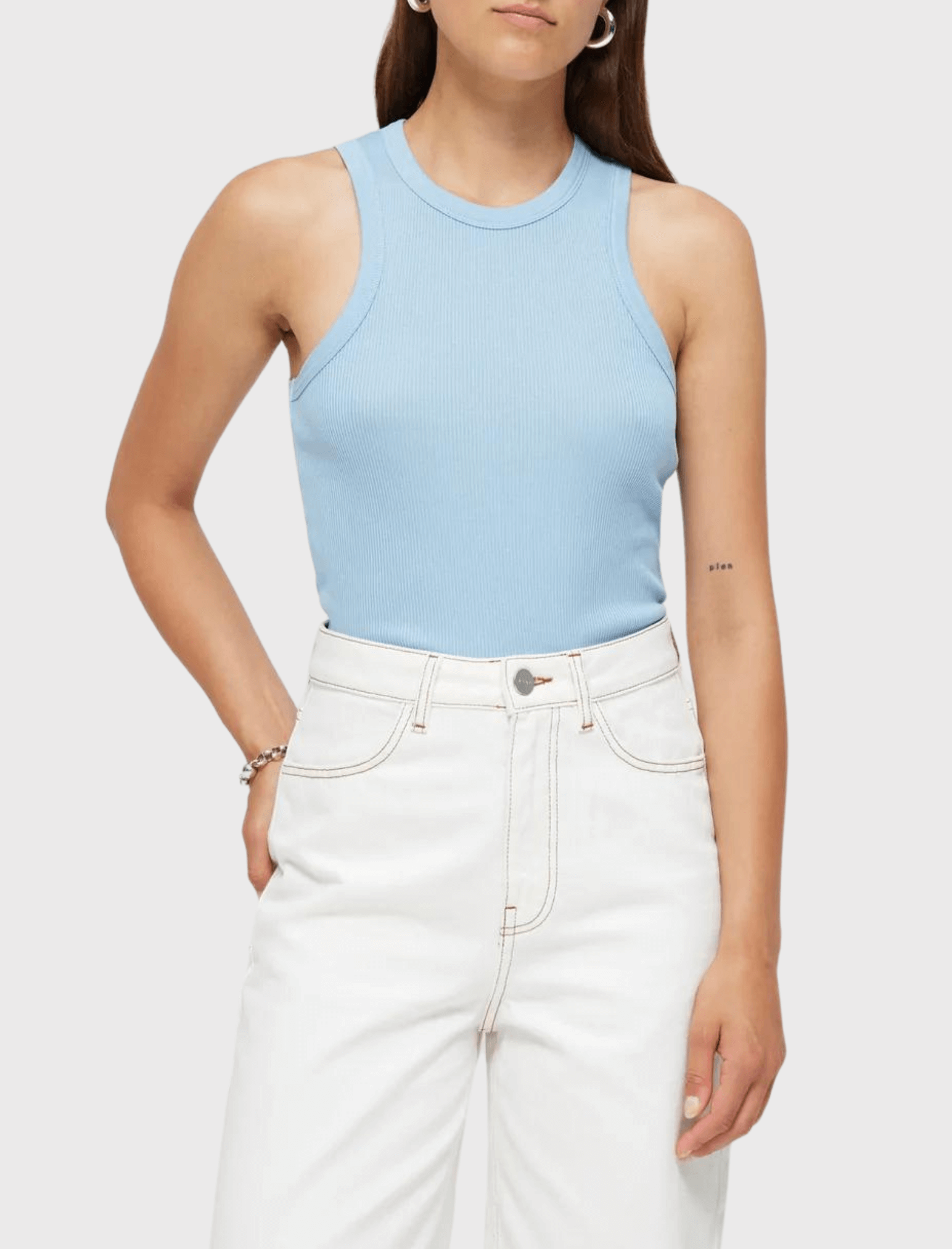 The Róhe Cotton Rib Tank Top in Sky is made from 100% Mercerised Cotton