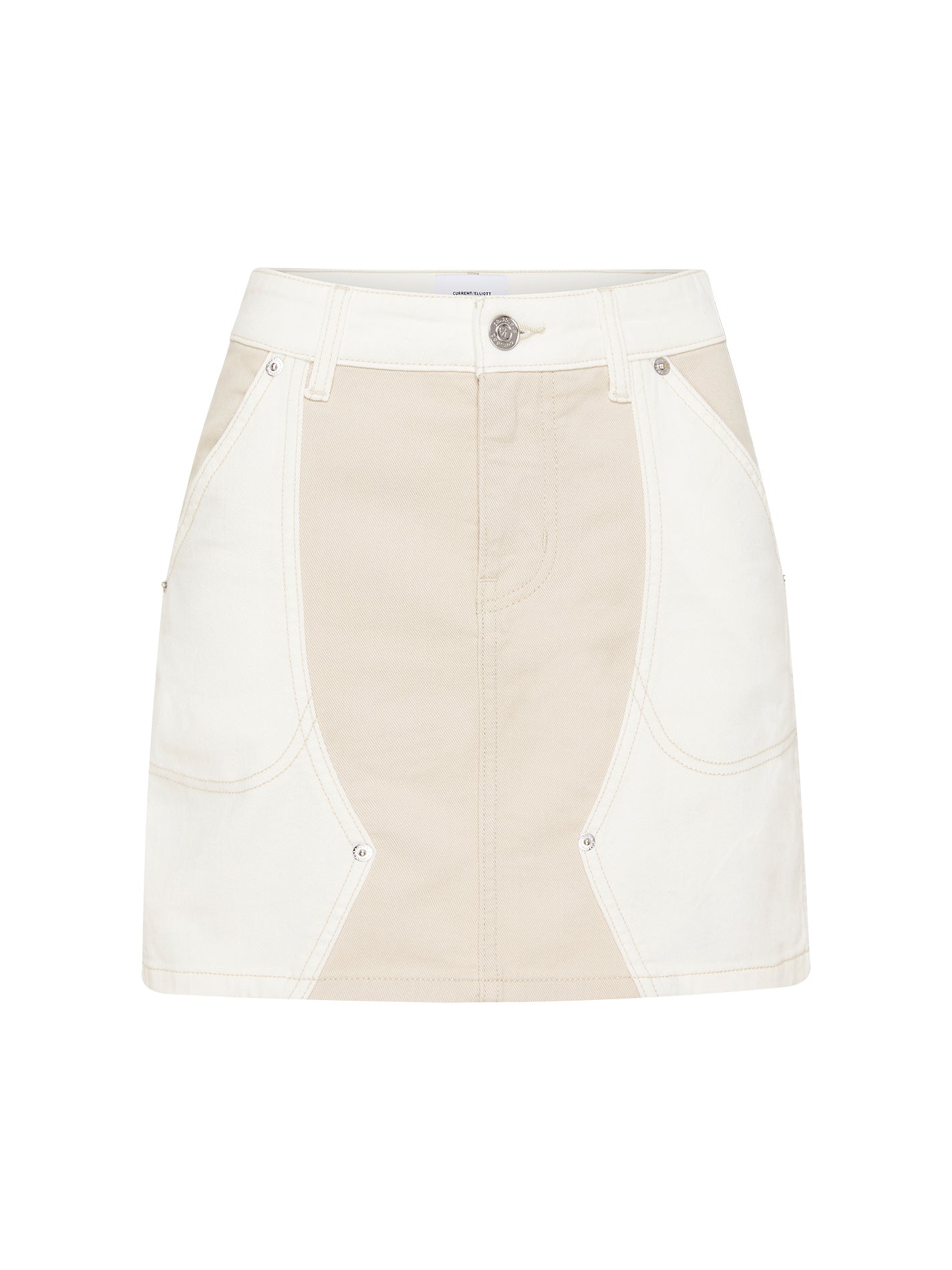 The Current Elliott The Agatha Skirt in Oatmeal White is made from 98% Cotton and 2% Elastane