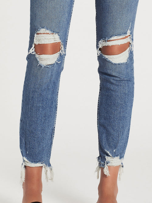 The Paige Hoxton Ankle Peg Jean in Novi Destructed are made from 98% Cotton 2% Elastane