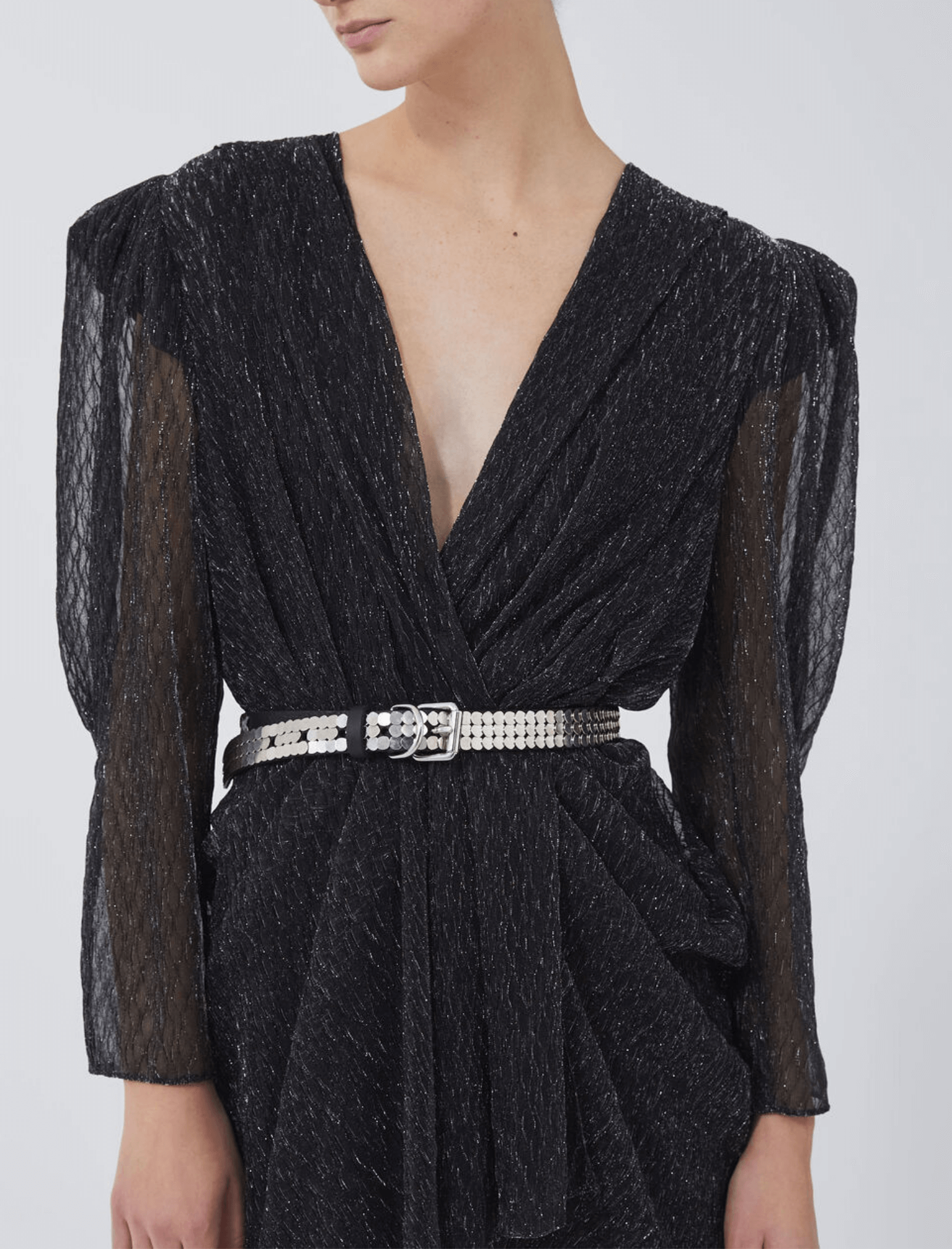 The IRO Patia Dress in Full Black Silver is made from 50% Polyester, 50% Metallized Polyester Lining: 100% Polyamide
