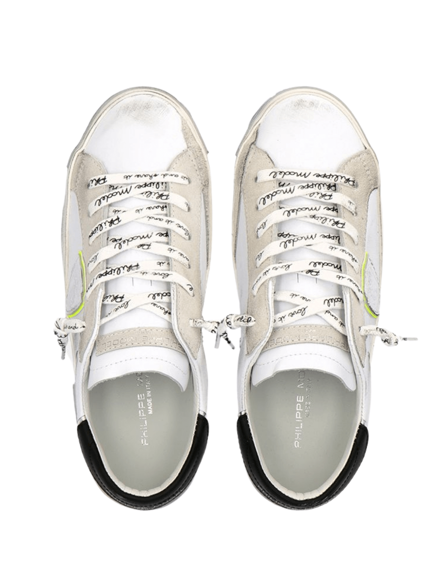 The Phillipe Model Prsx Low Sneaker in Metal Multicolour / Blanc Silver is made from 100% genuine leather and suede upper, leather inner and a rubber sole
